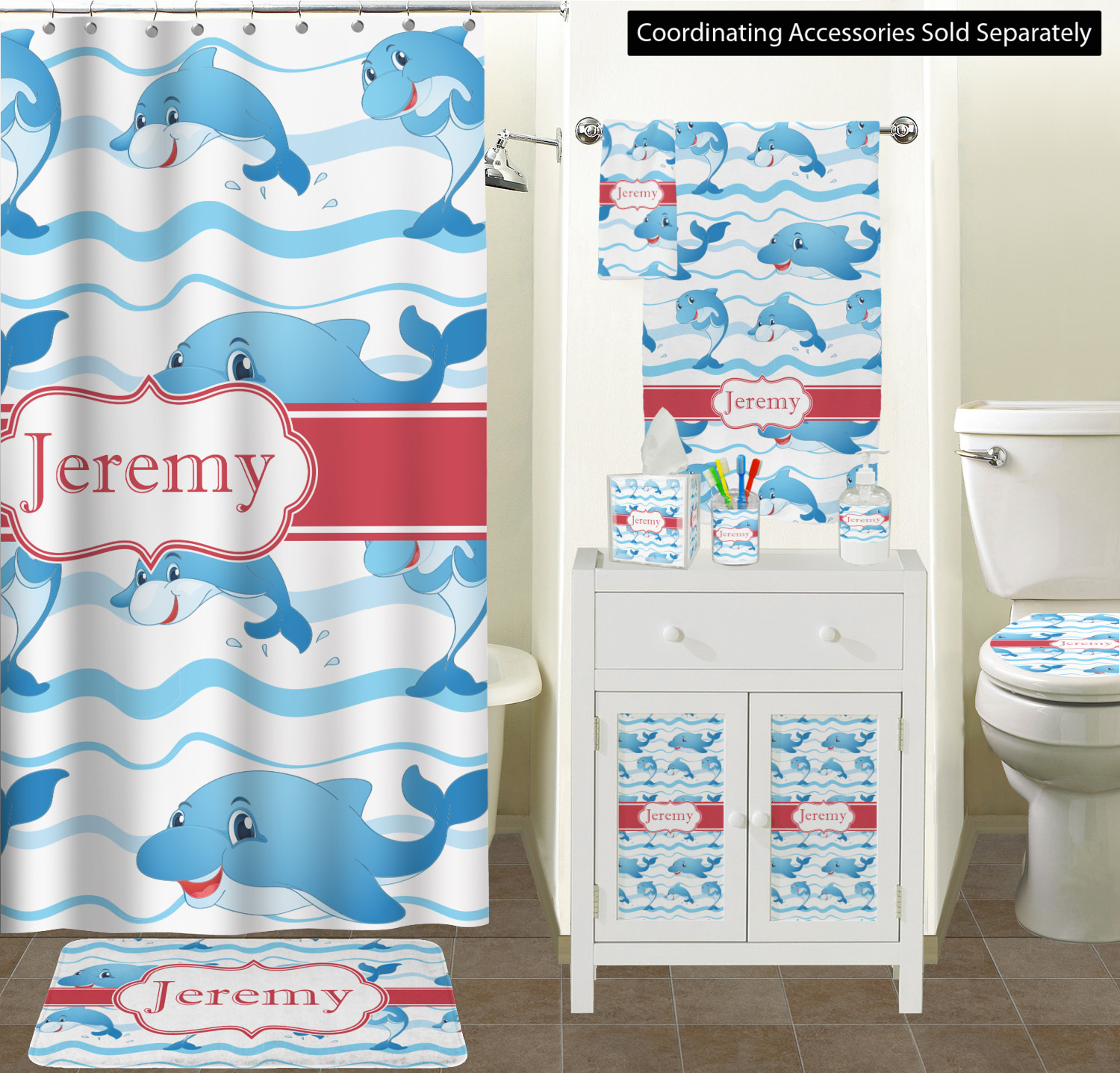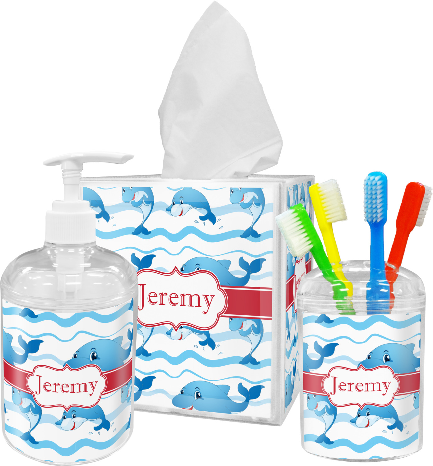 Who doesn't get excited when they see dolphins on the horizons? This design features a bunch of cute, smiling dolphins as they splash through the sea. Use to reminiscence a much missed vacation, or even just to spice up a boring summer day. Personalize by adding your kid's name!