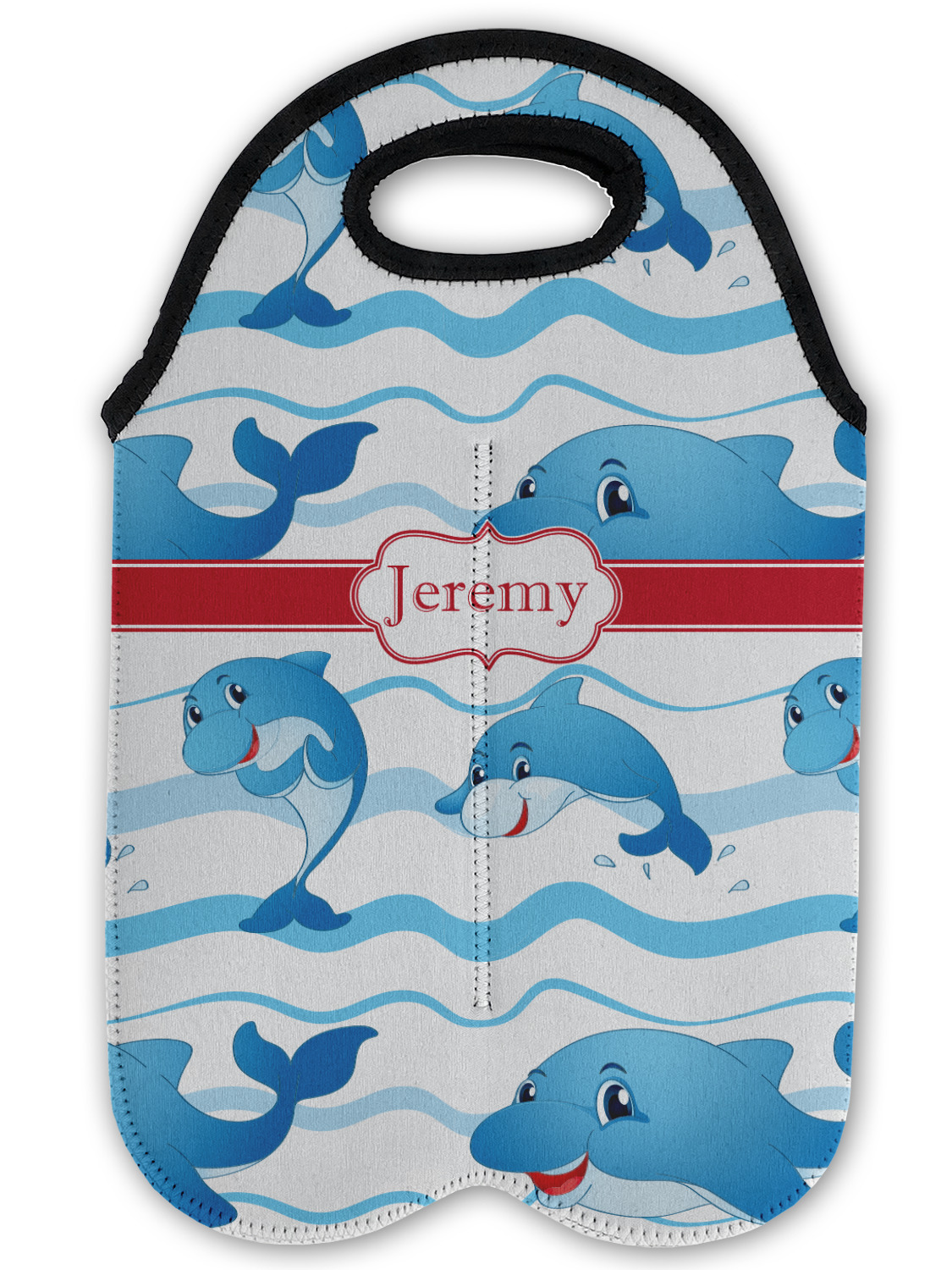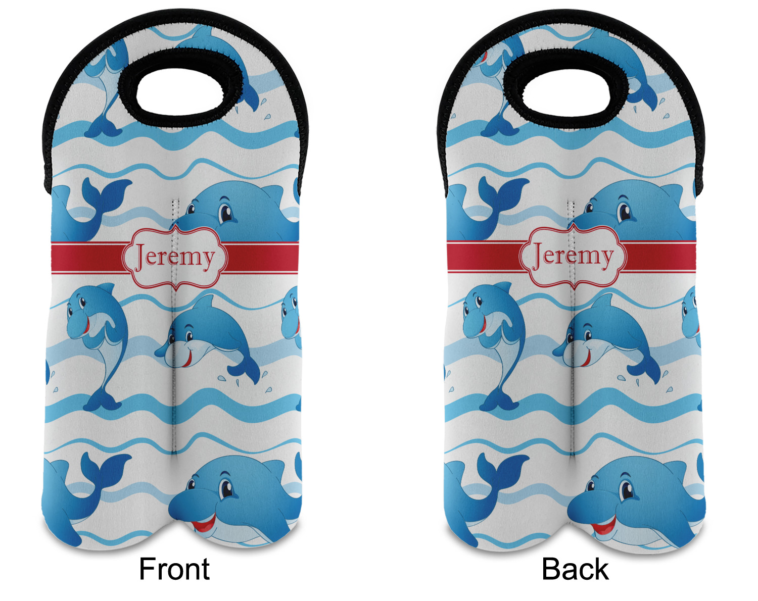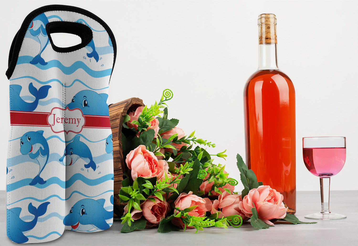 These tote bags are insulated to keep the bottles cold and have a stitched separation down the middle and double handles to keep the two bottles safe and secure during travels.
