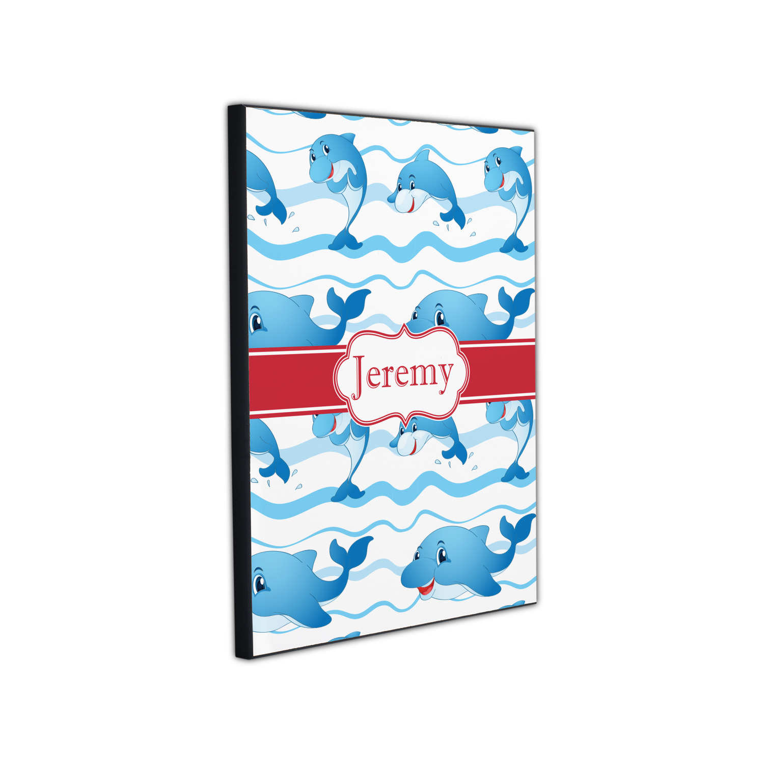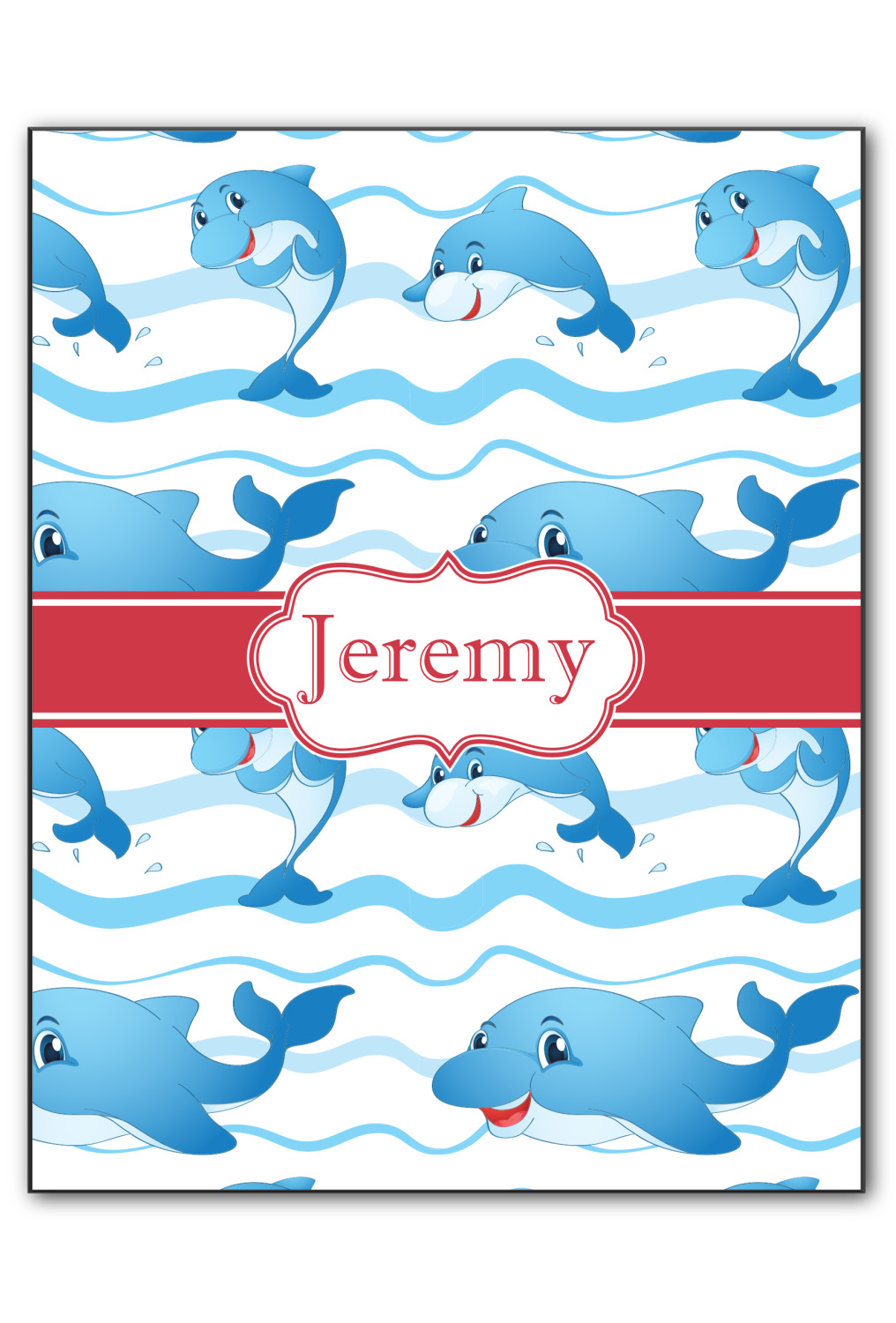 Who doesn't get excited when they see dolphins on the horizons? This design features a bunch of cute, smiling dolphins as they splash through the sea. Use to reminiscence a much missed vacation, or even just to spice up a boring summer day. Personalize by adding your kid's name!