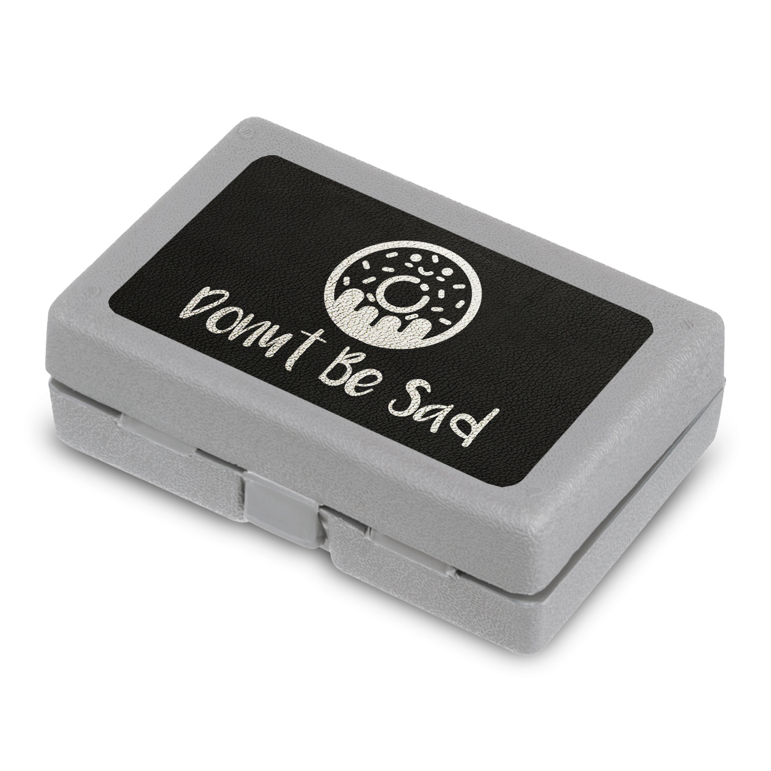 In a tri-fold hard shell case which measures 6" wide, 4" deep and 2" tall, this kit is the perfect size to keep in a desk, garage drawer, or anywhere else in the house. The snap closure keeps it securely closed to ensure the tools do not fall out. With the black faux leather on the outside engraved with your choice of personalization it will be easier to ensure it stays yours by being customized just for you!