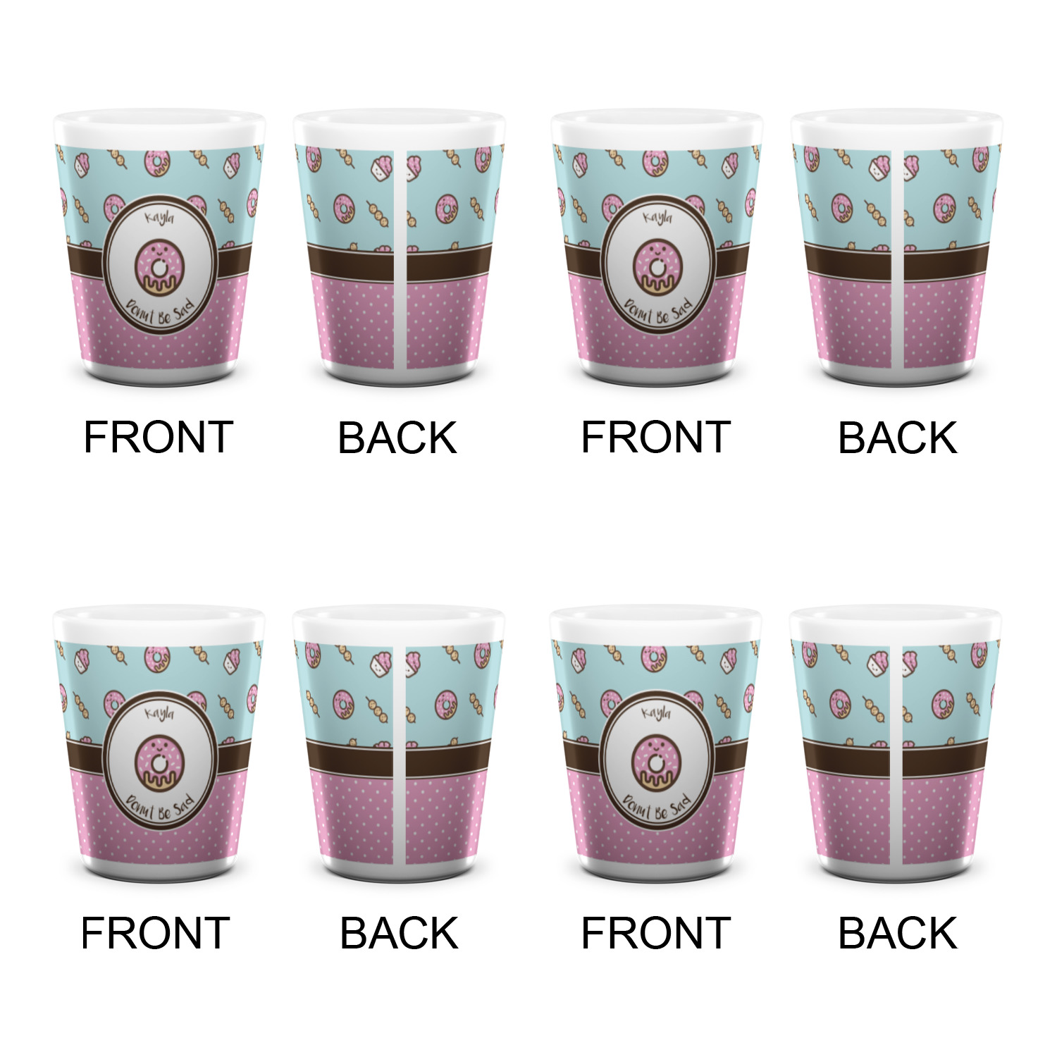 Made from ceramic these shot glasses are printed in full color with the design of your choice. These are a standard 1.5oz size and stand 2.25" tall. Available in a full white ceramic or a two-tone with a black color inside the shot glass. Buy a single or a set of 4, all of which can be designed separately to get you just what you want and need.