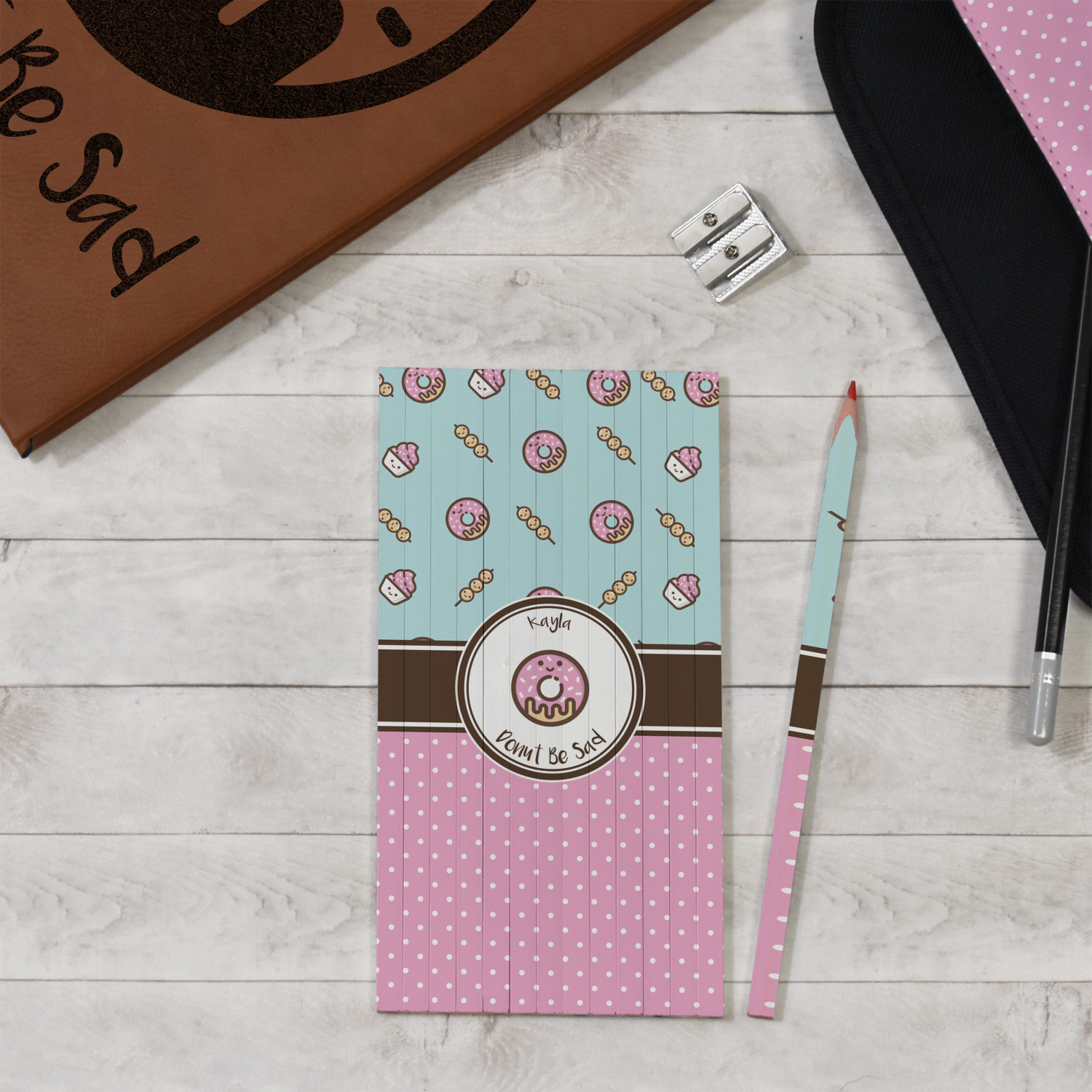 If you're a foodie or just love donuts, this design is perfect for you. This fun loving design will be perfect for any back to school products or fun personal items like our notebooks and journals. Even use this cute design for your pet!