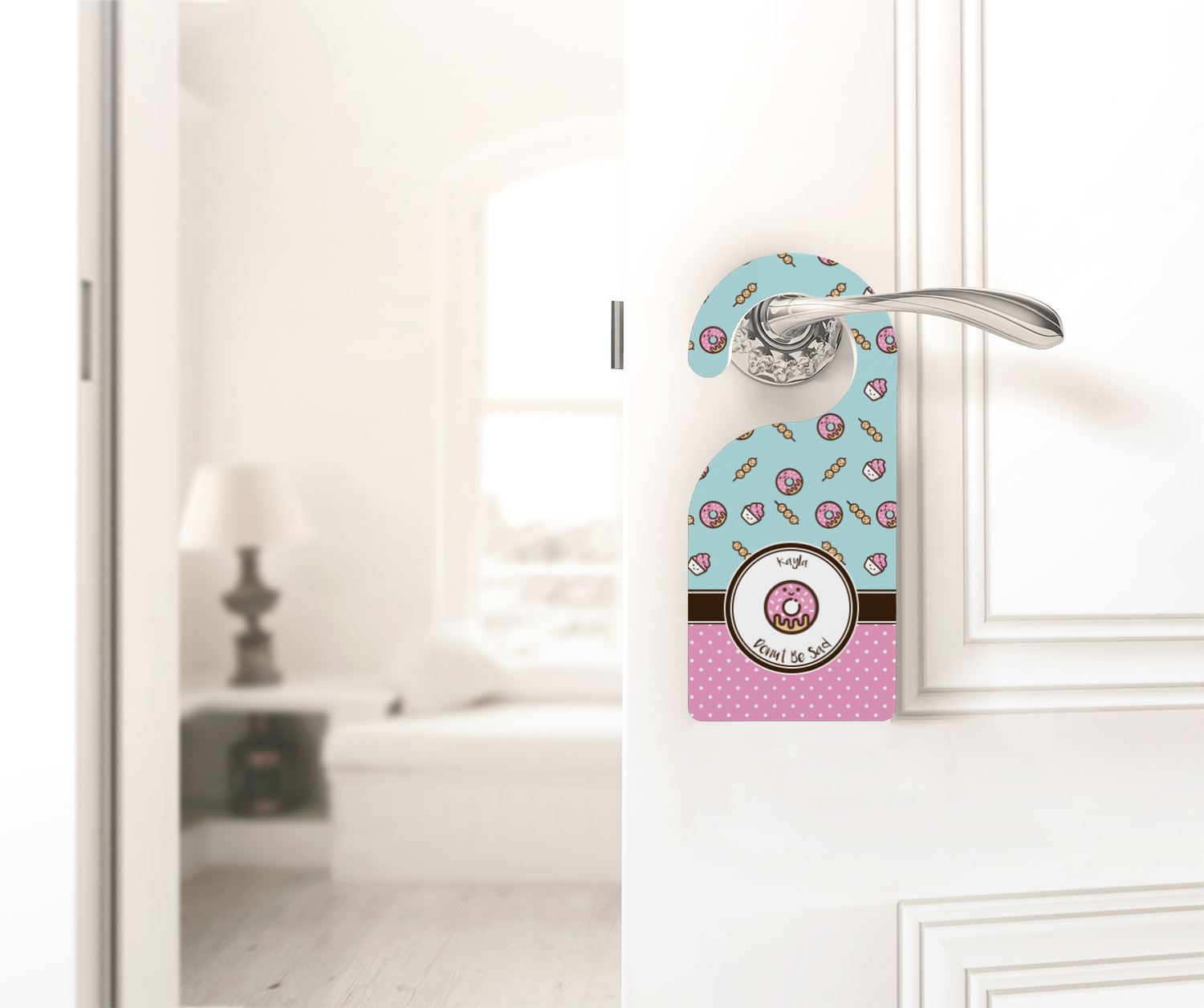 Decorate your door handles with one of our door hangers! These multi-purpose doorknob hangers can be used in a variety of situations; kids can use them to mark their rooms, parents can use them to keep privacy, and they can be used on the doors of nurseries to indicate when the baby is sleeping. Customize a few for some of the rooms in your house today! You could even give these as gifts; give one to the newlyweds in your life, or to a college student so they can use them in their dorm!