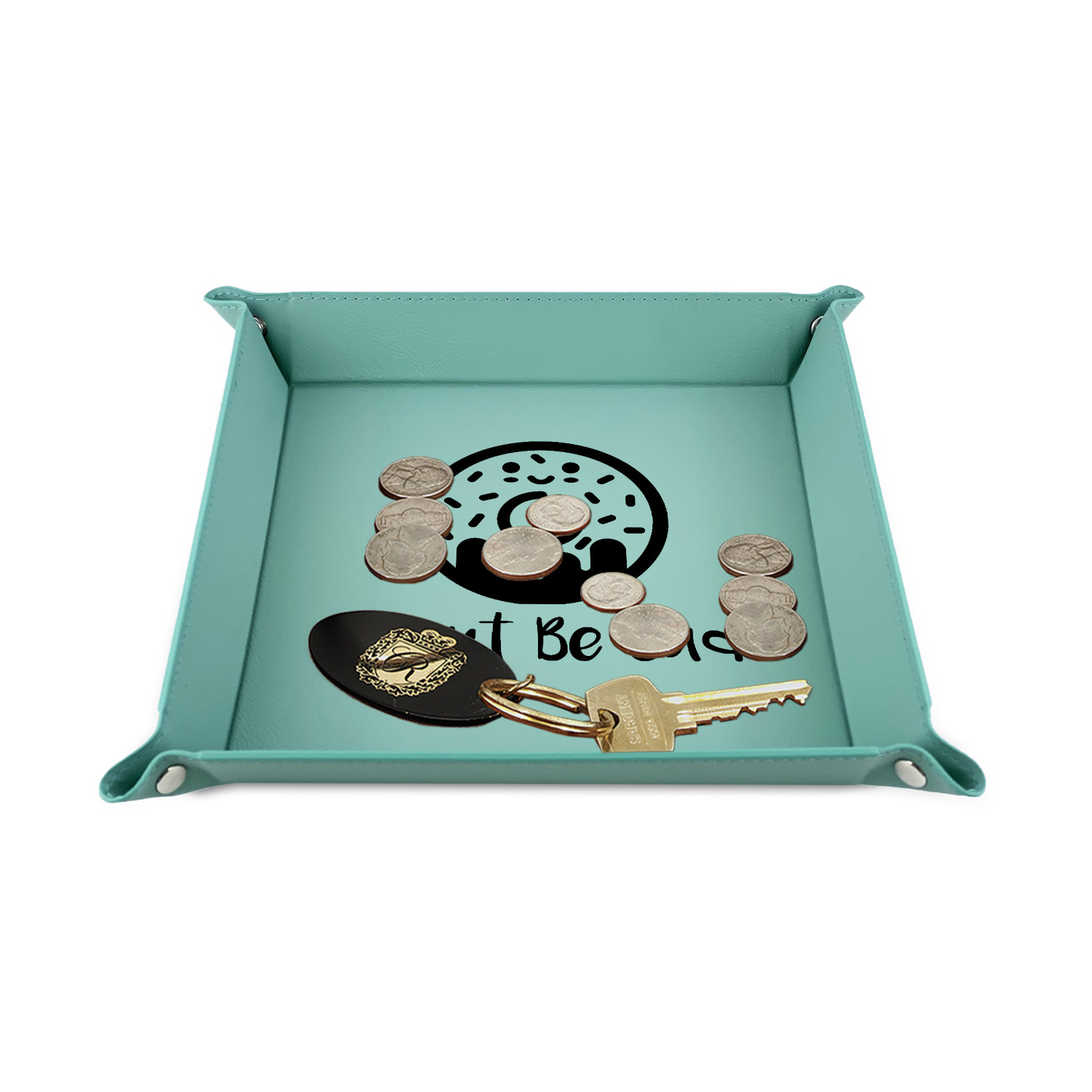 The leatherette wraps the hard board base and sides with flexible hinges to fold the sides up. The corners are secured using silver snaps. The 6in x 6 in tray measures approximately 9.5in x 9.5in when laid flat. The 9in x 9in tray measures approximately 13in x 13in when laid flat.