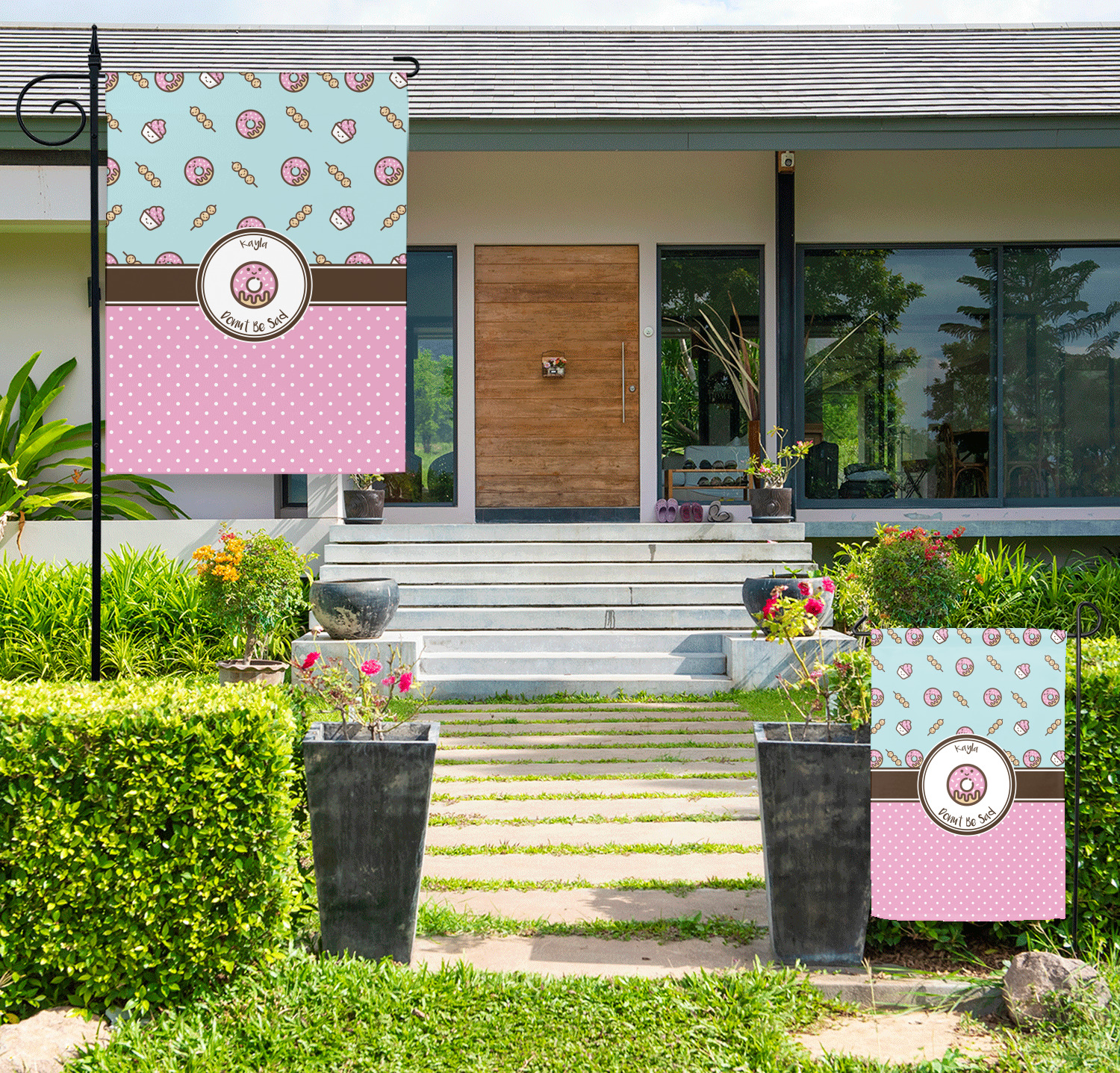 Decorate your front yard or your garden with one of our personalized garden flags! These garden flags will add a splash of color and personalization to any home's greenspace. Customize one with your name, favorite colors, and patterns, as a great addition to your home's exterior! Or, customize multiple seasonal flags and change them throughout the year!