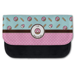 This design is a beautiful light blue/teal and light pink. The top half of the design has a fun pattern with a blue/teal background and pink donuts and other treats. The bottom half is a bright pink polka dot pattern. Each background is divided by a dark brown ribbon. On top of these is a round label with an adorable donut and your personalization right in the middle.