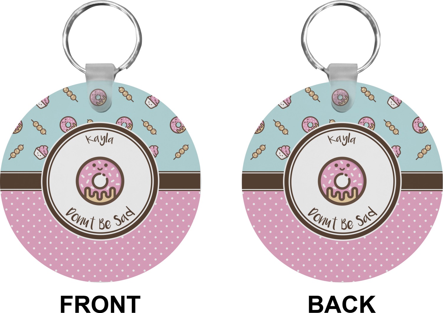 Our personalized keychains attach to the included metal, split key ring with a plastic, removable snap. Since a metal ring is included with your purchase, you have the liberty to keep your keys together on the ring, with or without your unique keychain. We offer this keychain in three different shapes: circle, heart, or diamond. We print your personalized design(s) on both sides of the key chain, and the surface has a glossy, reflective finish that only emphasizes your design. Each keychain is approximately 2.25 by 2.25 inches.