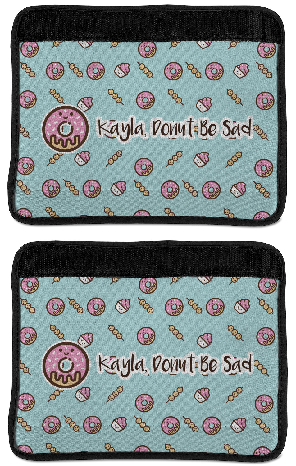 Made from neoprene, our seat belt strap covers wrap around the belt itself and have a Velcro tab for easy attachment and closure. The belt's edges are trimmed with a black polyester for a secure finish. Each cover is 9.5 by 7 inches when open and 9.5 by 2.5 inches when closed. We print your personalized design on the face of the seat belt pad.