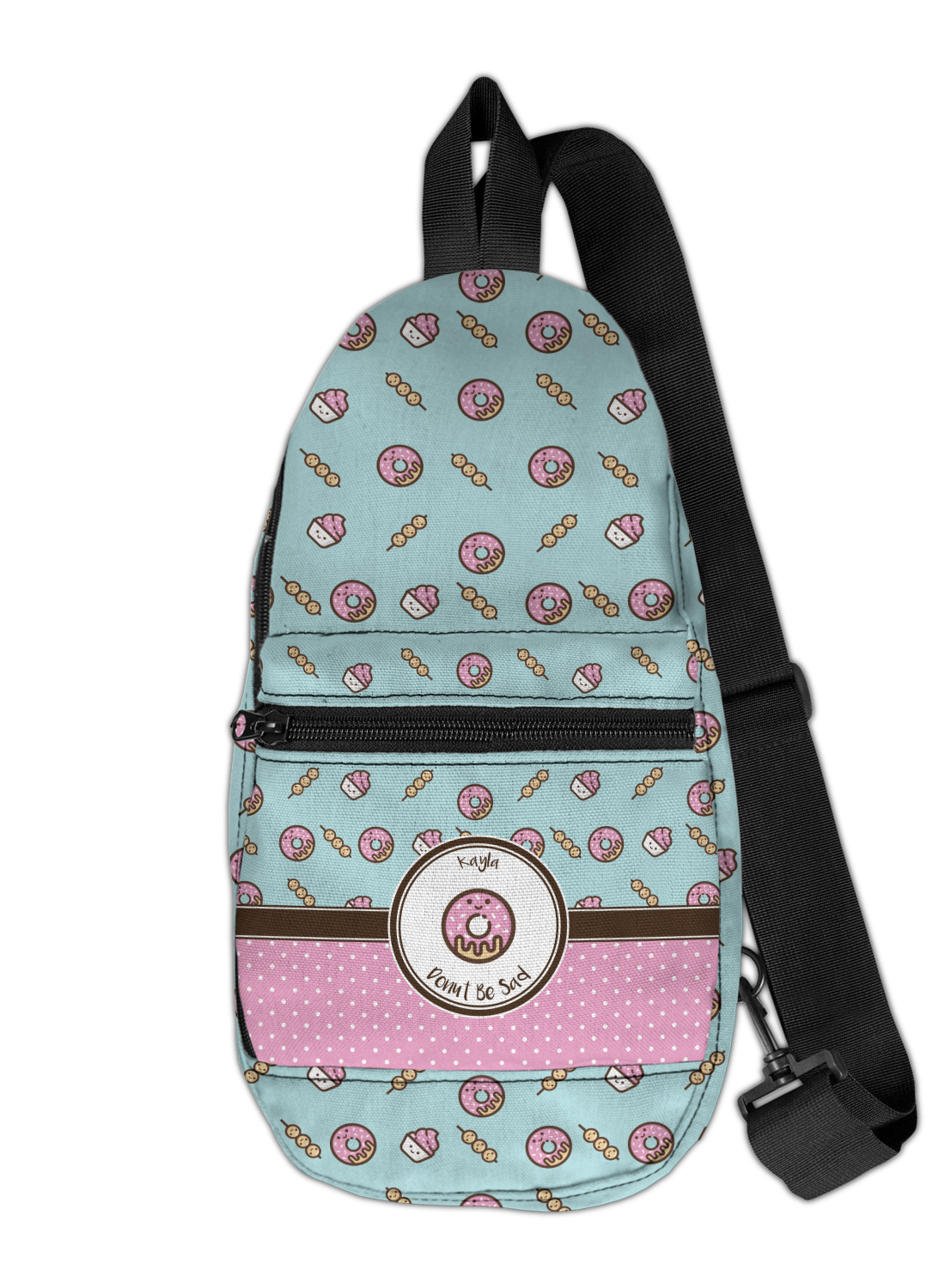 These sling bags are made from a durable polyester canvas. The fabric is printed with your design, then cut and hand sewn right here in the USA.