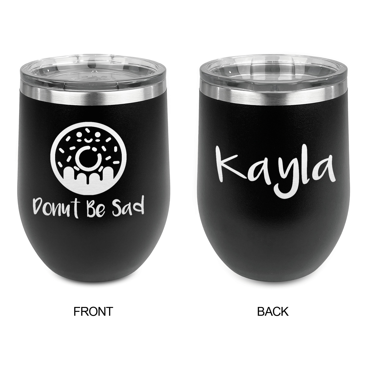Design your wine tumbler with a cool graphic or quote. Even put your initials or monogram! These cups are laser engraved, which looks extra sharp on the metal tumbler.