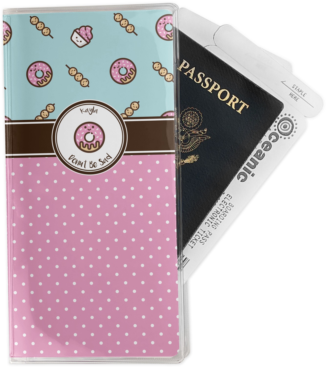 This document holder is really sturdy and has your personalized design inserted right behind all of your nifty pockets, so you can see it on the front and back covers. There are two large pockets and two shorter pockets inside. The larger pockets are tall enough to keep your boarding pass nice and straight. The smaller pockets (on top of the large pockets) are large enough to fit your passport, credit card, or ID.