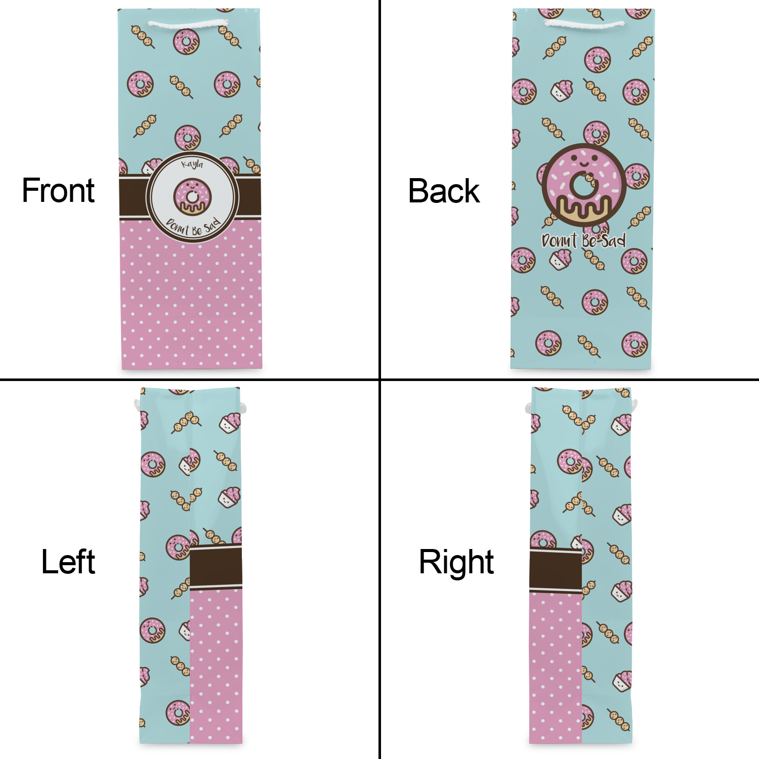 Our wine bags are printed on premium paper. The bags are then cut, scored and folded. The handles and cardstock base it attached. These custom wine bags are printed and made in the USA.