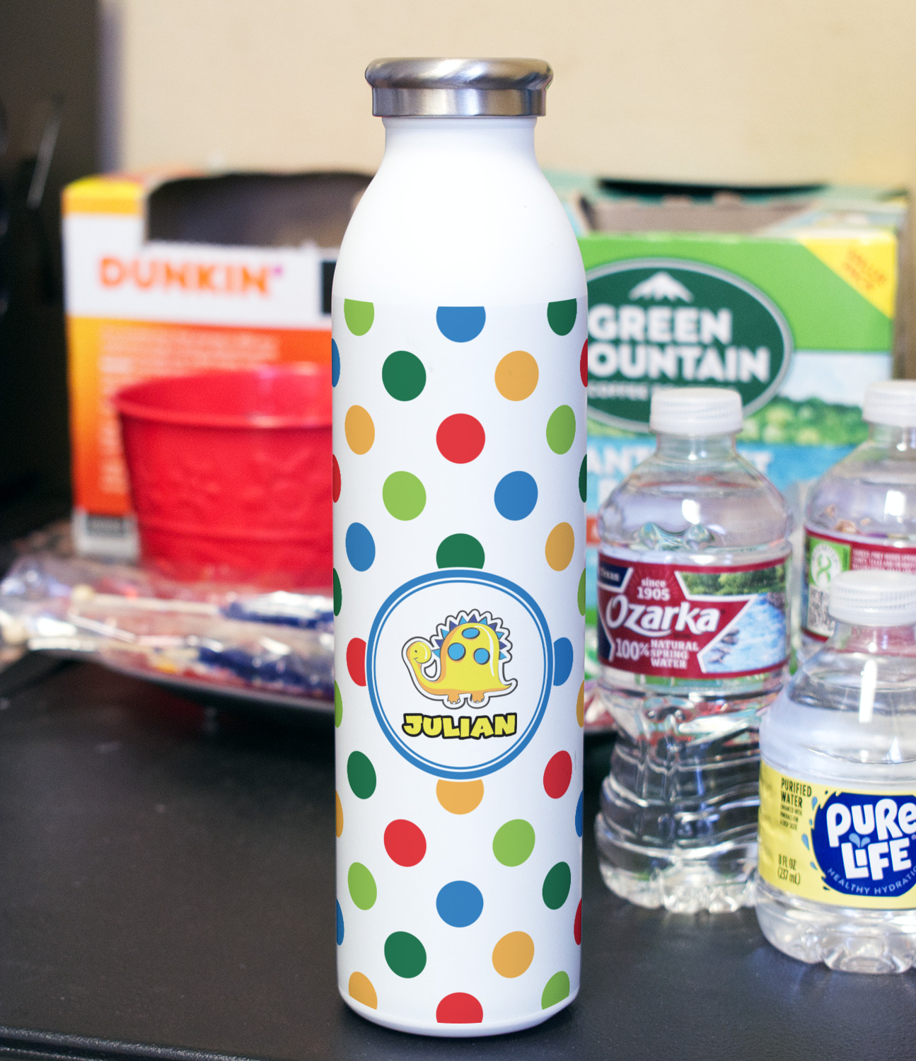 With the double wall insulated construction this bottle will keep drinks cold for 24 hours and hot for 12 hours. The large size allows for a beautiful large artwork space to allow you to make this bottle all your own.