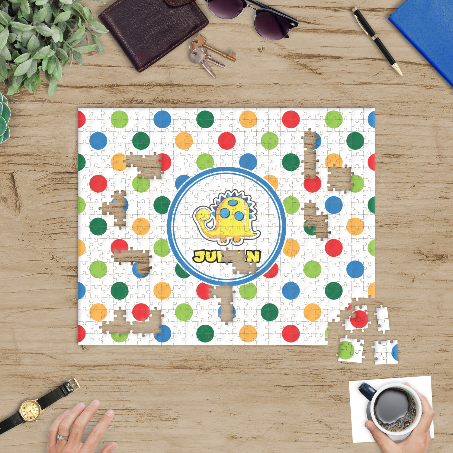 You can also upload your logo or art that you or your kids drew. To create more challenging jigsaw puzzles, you can create a pattern from with your logo or artwork. You can also add other elements such as text or personalization.