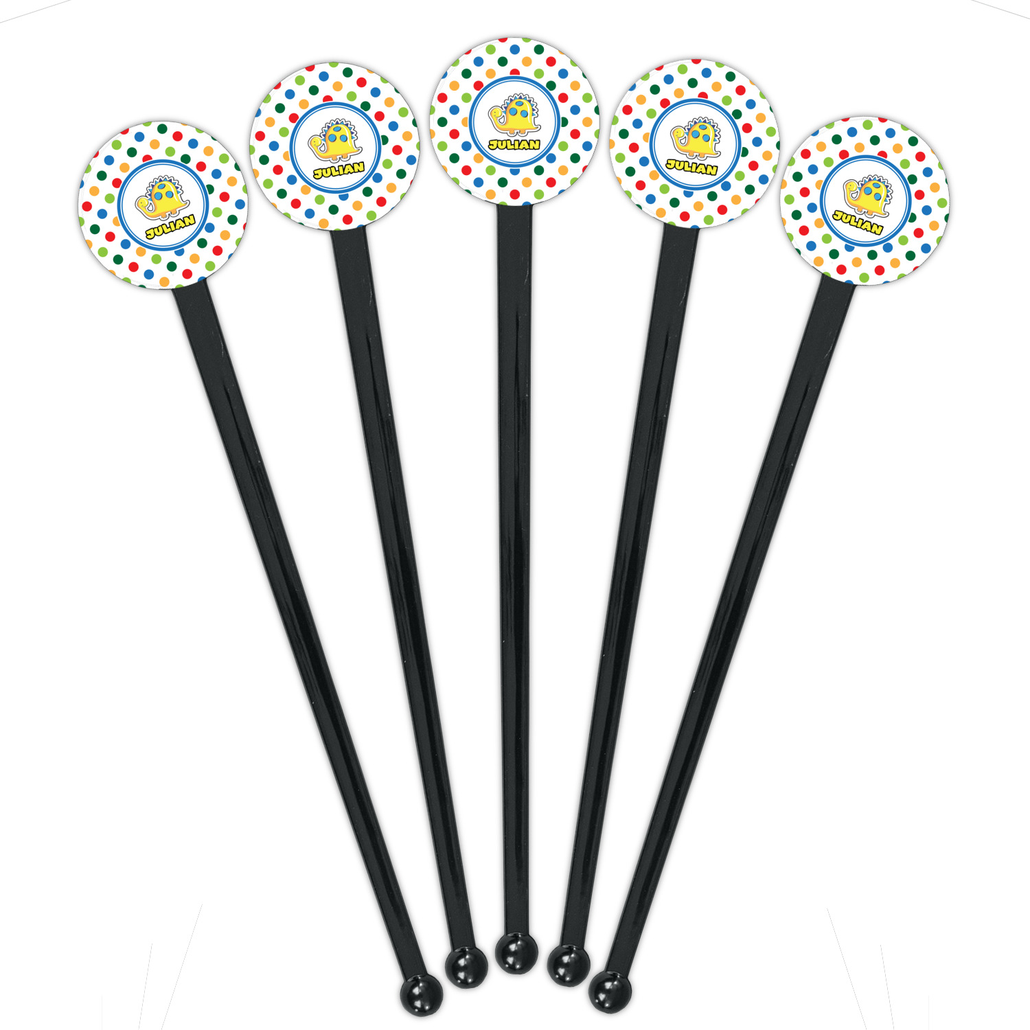 Shape + Symbol Designs for 7" Round Plastic Stir Sticks - Black - Single-Sided