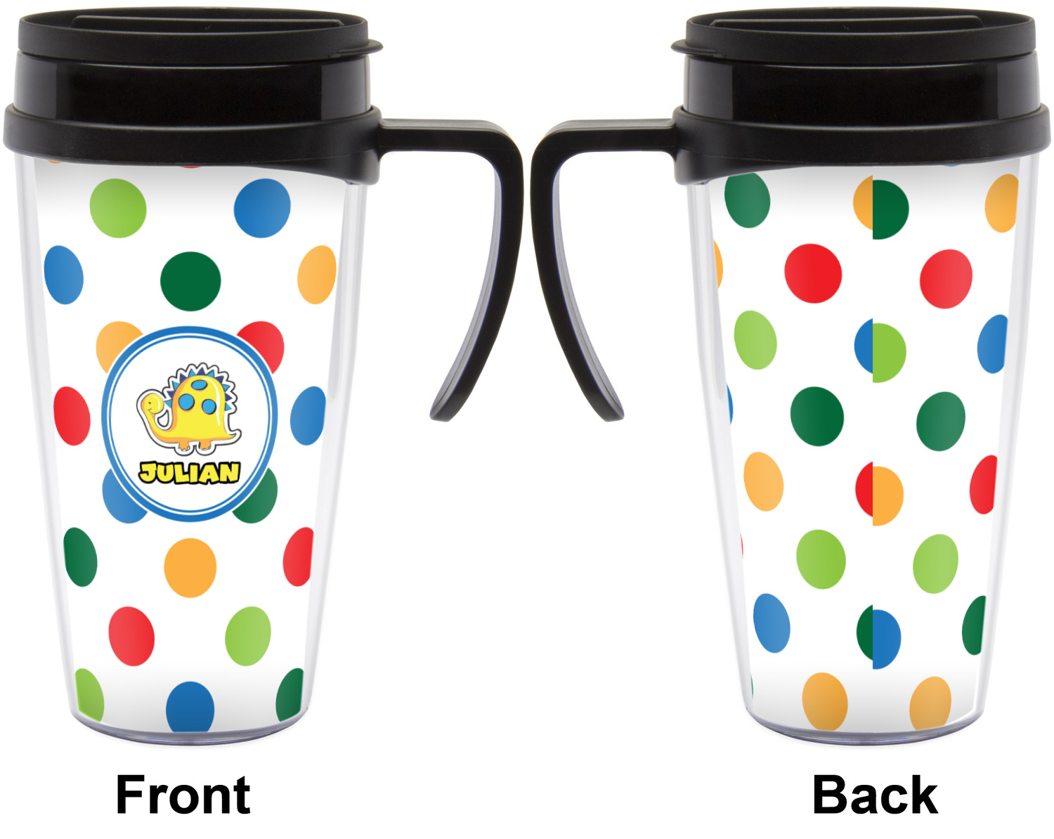 Keep your drink secure while on your daily commute with one of our personalized travel mugs! These travel mugs will add a splash of color and creativity to your kitchen counter-top, car cup holder, office desk, or wherever you choose to place them! With these custom mugs, you'll never have to settle for a boring, run-of-the-mill travel mug.