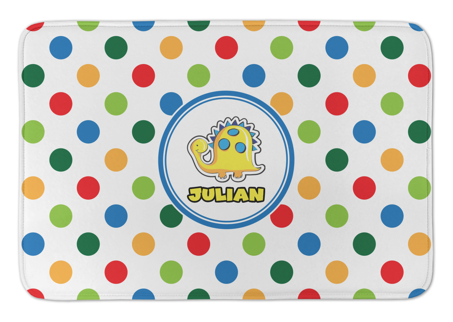 A white label trimmed in coordinating blue showcases a cute yellow dinosaur. Add personalization of your choice for this special pattern.