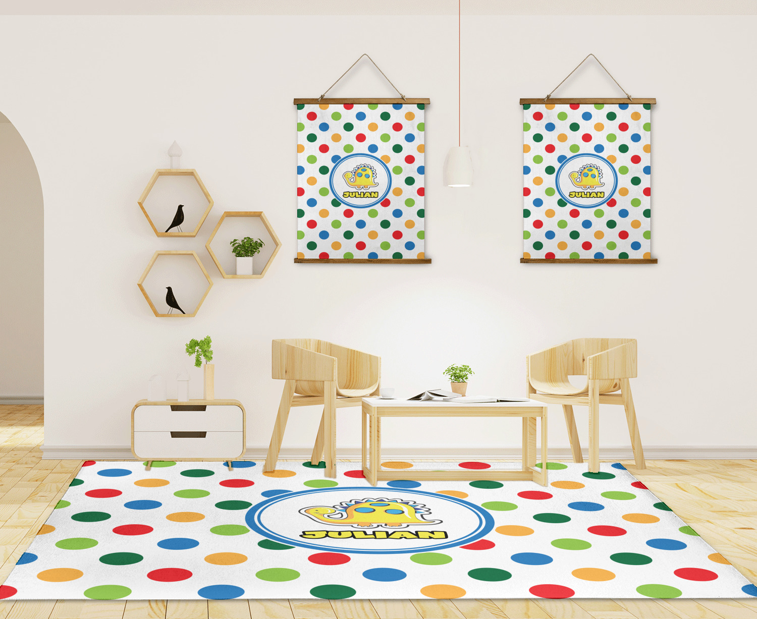 Colorful and popular bright colored polka dots scream fun and whimsical and will be a hit with your little one. Using colors of Blue, red, greens, and orange decorating will be a snap.