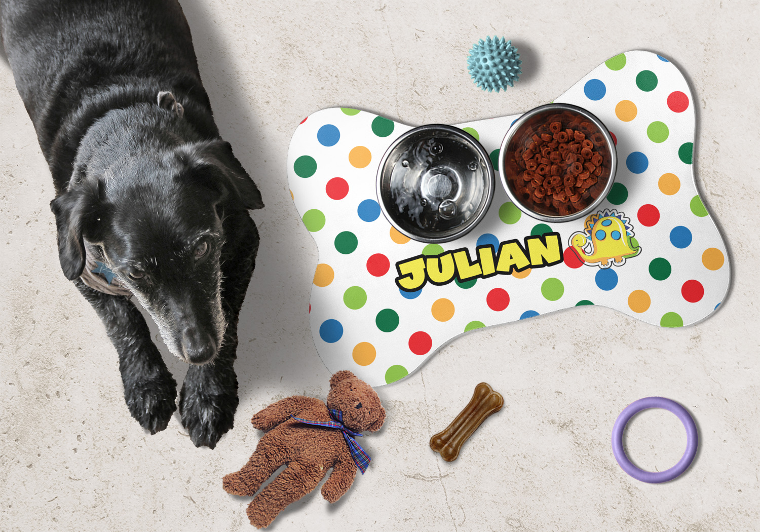 If you are purchasing a pet food mat, consider a customized dog bowl, dog collar, a bone-shaped dog tag, or any other pet supplies to match! Check out our Pet Accessories category for even more options! Craft a design that you want to extend to your eating area? Try our Home and Garden category for kitchen decor options!