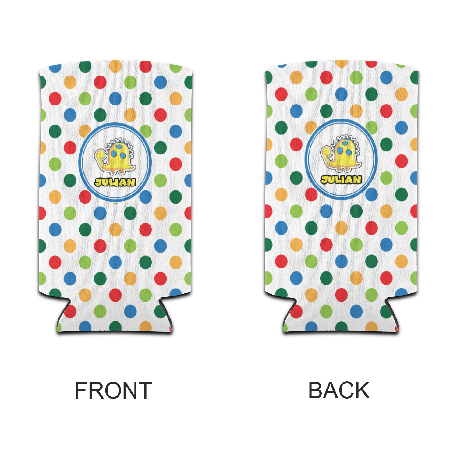 A white label trimmed in coordinating blue showcases a cute yellow dinosaur. Add personalization of your choice for this special pattern.