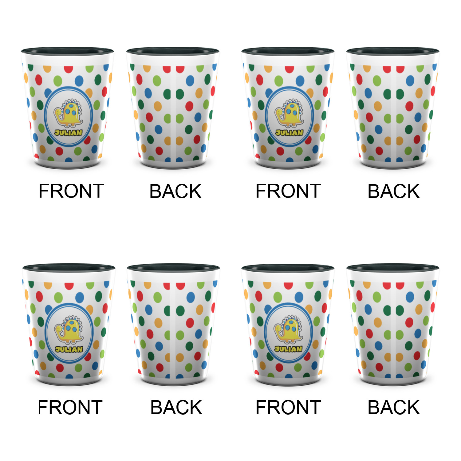 Made from ceramic these shot glasses are printed in full color with the design of your choice. These are a standard 1.5oz size and stand 2.25" tall. Available in a full white ceramic or a two-tone with a black color inside the shot glass. Buy a single or a set of 4, all of which can be designed separately to get you just what you want and need.