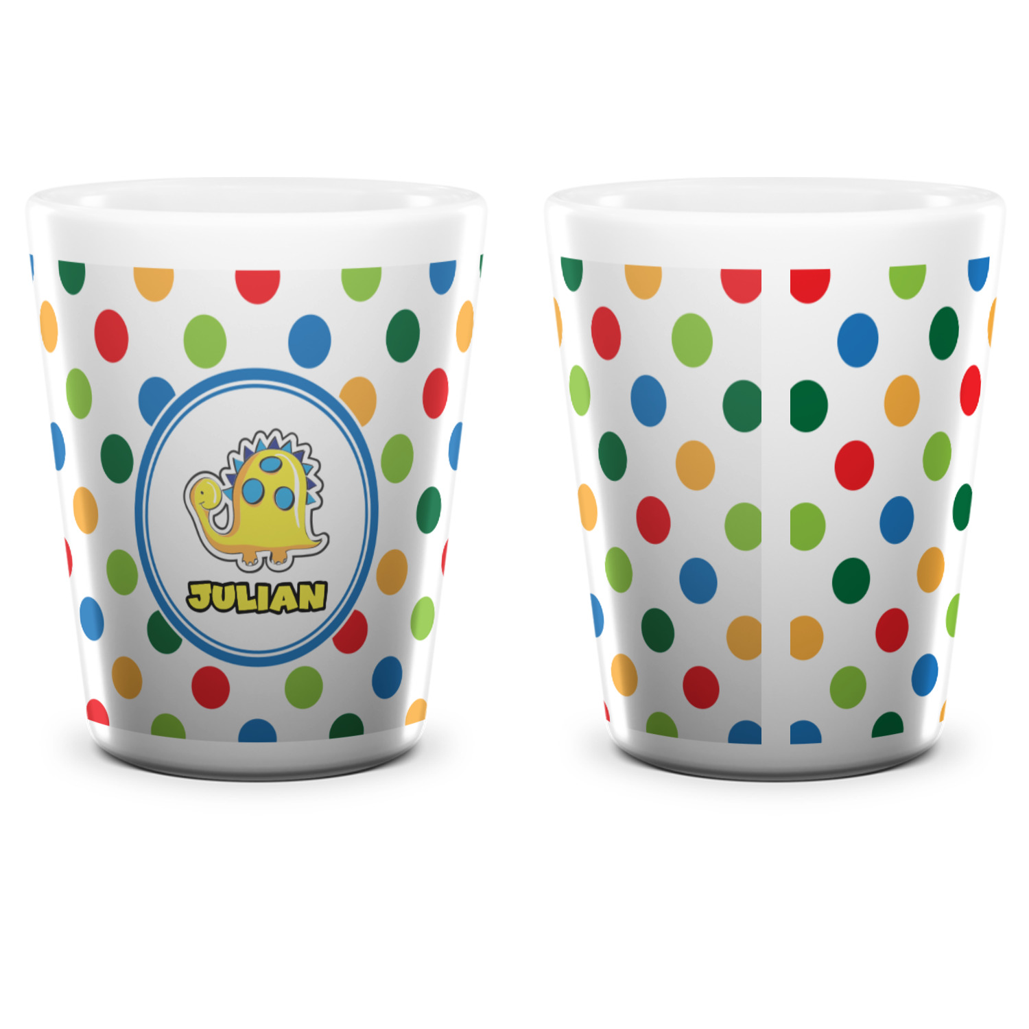 Made from ceramic these shot glasses are printed in full color with the design of your choice. These are a standard 1.5oz size and stand 2.25" tall. Available in a full white ceramic or a two-tone with a black color inside the shot glass. Buy a single or a set of 4, all of which can be designed separately to get you just what you want and need.