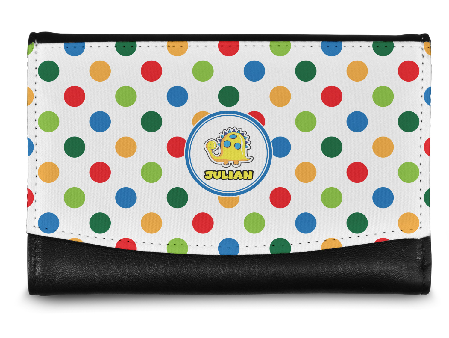 The compact size of this wallet - 5.5in wide, 3.5in tall and 0.75in thick when folded - makes it perfect to hold in hand and small enough to fit in a clutch or a normal size purse. The outside flap is customized with your choice of artwork and closes with a snap closure - with two different snaps to allow it to be adjusted when storing more items - to securely fasten the flap.