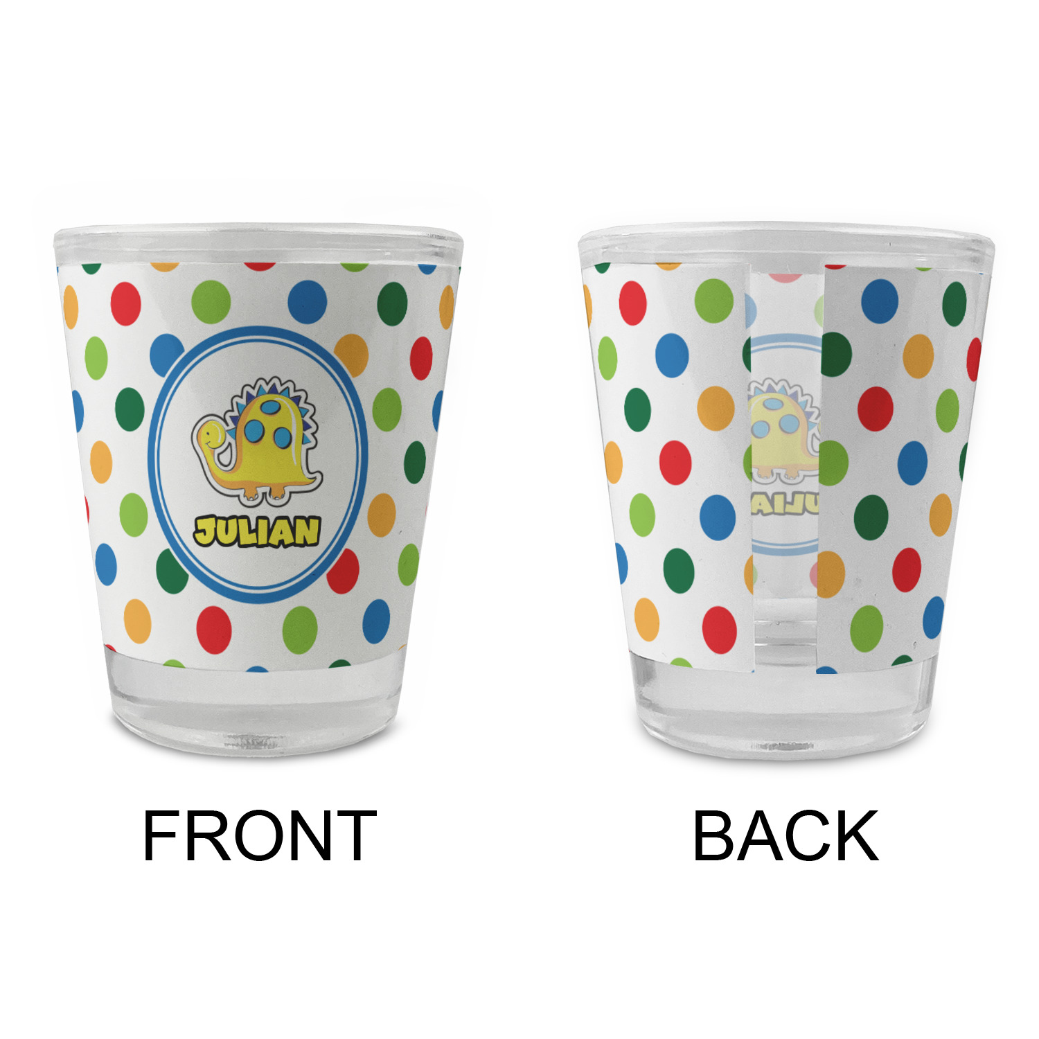 Made with frosted glass, these shot glasses are printed in full color with the design of your choice. They are a standard 1.5oz shot glass and are 2.4" tall. The print is wrapped around the shot glass in a full wrap and boldly displays your customization.