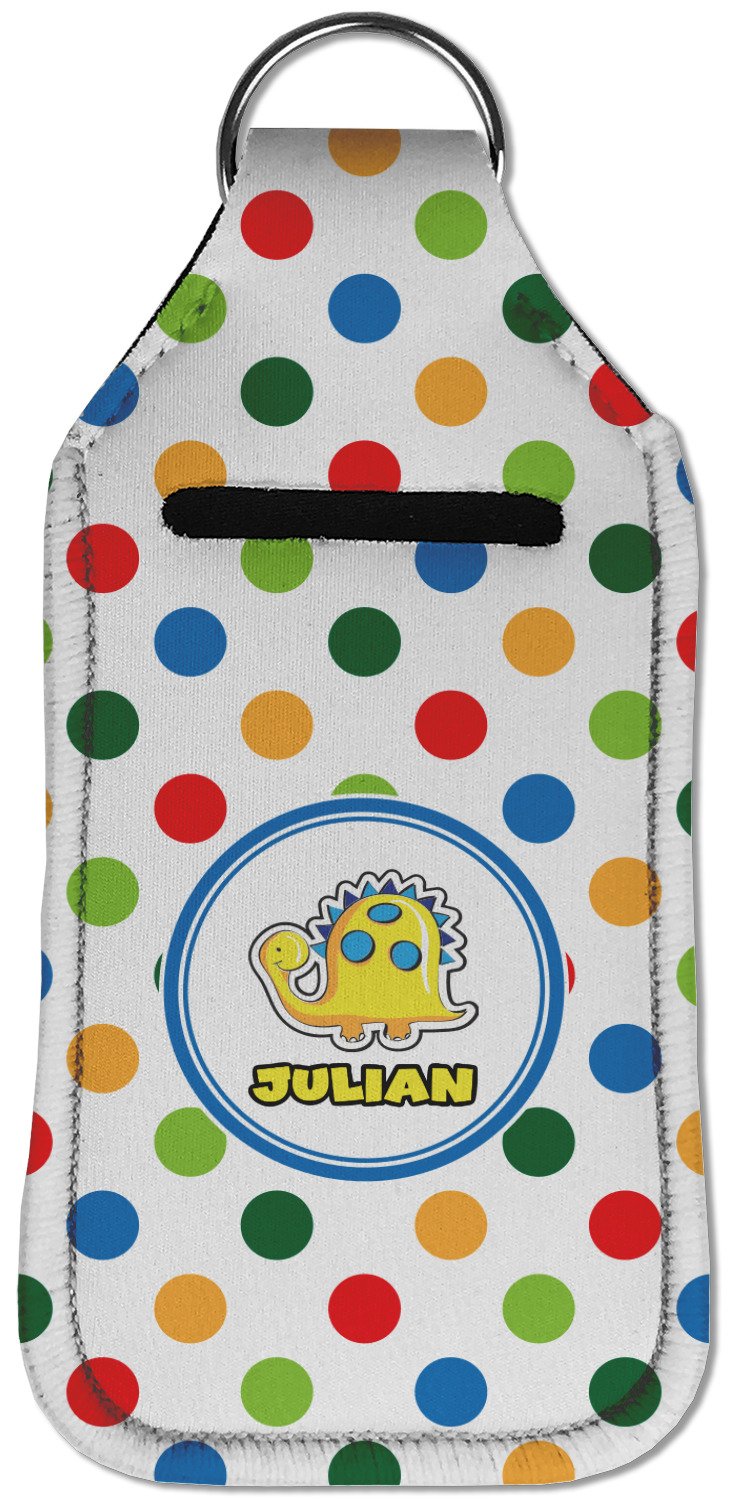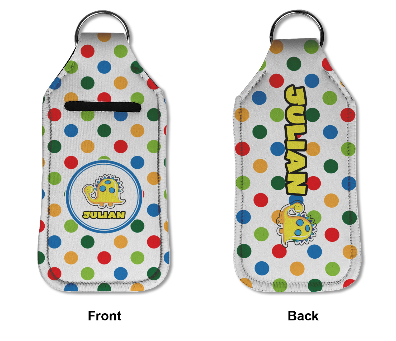 Each hand sanitizer holder comes with its own empty travel-sized, refillable hand sanitizer sure to fit snug in your customized sanitizer case! Our hand sanitizer cases are a durable, yet soft neoprene material sure to last any daily activities or travel agenda. Customize and personalize a hand sanitizer bottle holder with one of our two sizes - small (4.25" x 2.25") or large (5.5" x 2.5"). Each travel sanitizer holder comes with a keyring for attachment on bags, keys, or more!