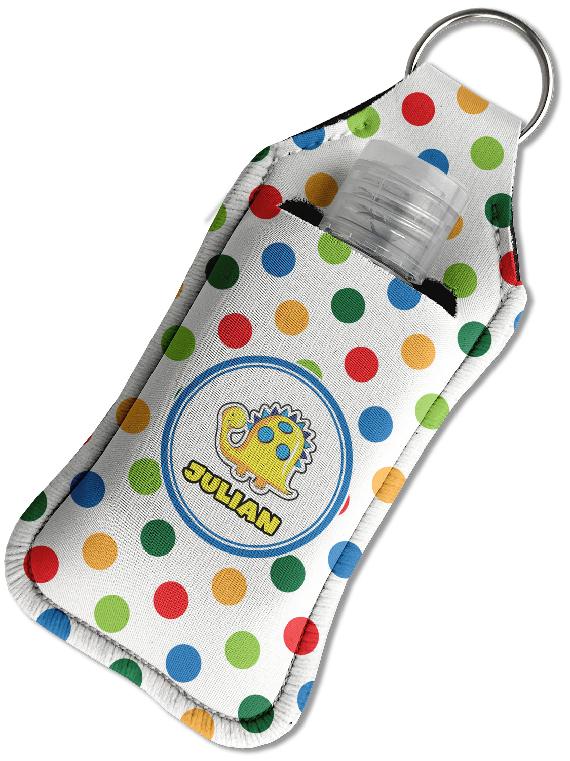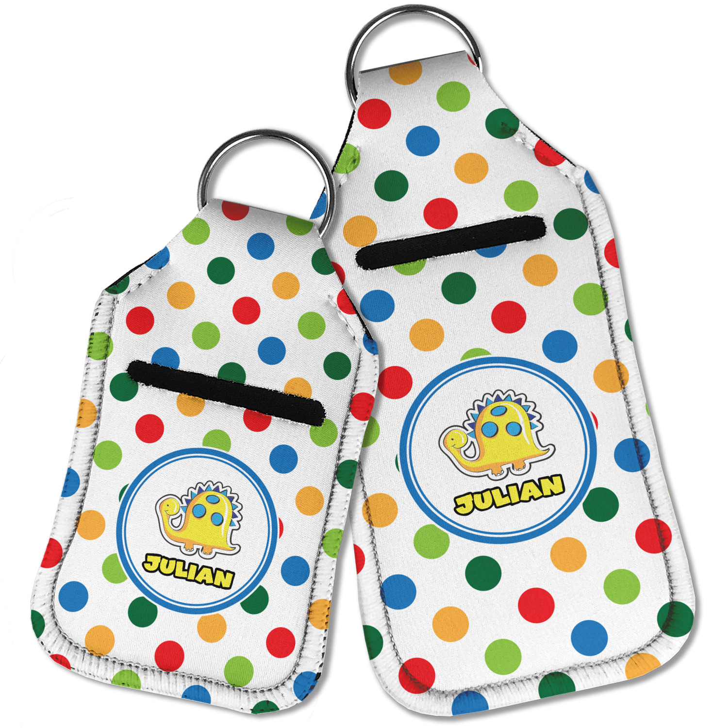Each hand sanitizer holder comes with its own empty travel-sized, refillable hand sanitizer sure to fit snug in your customized sanitizer case! Our hand sanitizer cases are a durable, yet soft neoprene material sure to last any daily activities or travel agenda. Customize and personalize a hand sanitizer bottle holder with one of our two sizes - small (4.25" x 2.25") or large (5.5" x 2.5"). Each travel sanitizer holder comes with a keyring for attachment on bags, keys, or more!