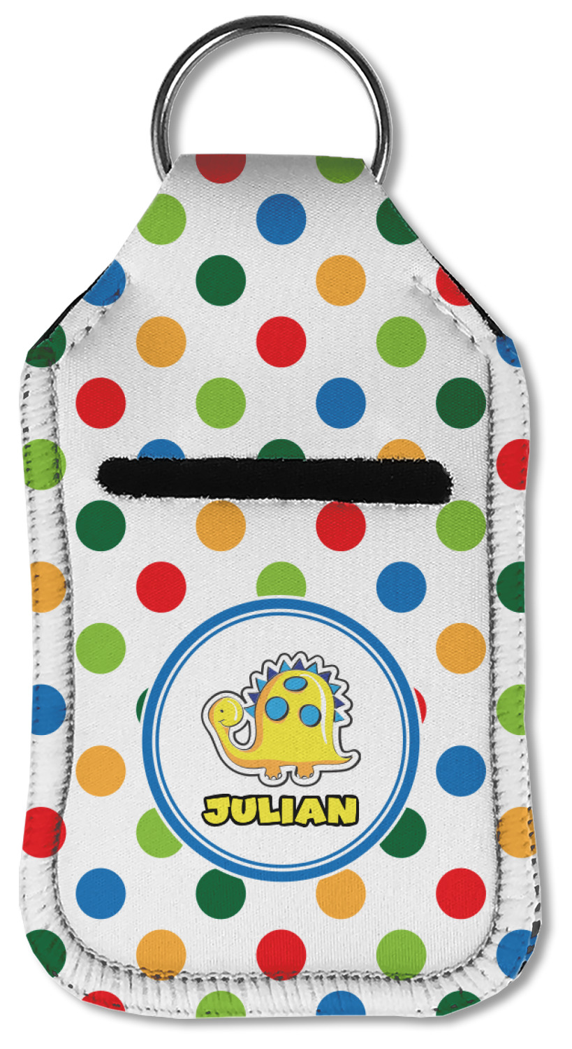 Each hand sanitizer holder comes with its own empty travel-sized, refillable hand sanitizer sure to fit snug in your customized sanitizer case! Our hand sanitizer cases are a durable, yet soft neoprene material sure to last any daily activities or travel agenda. Customize and personalize a hand sanitizer bottle holder with one of our two sizes - small (4.25" x 2.25") or large (5.5" x 2.5"). Each travel sanitizer holder comes with a keyring for attachment on bags, keys, or more!