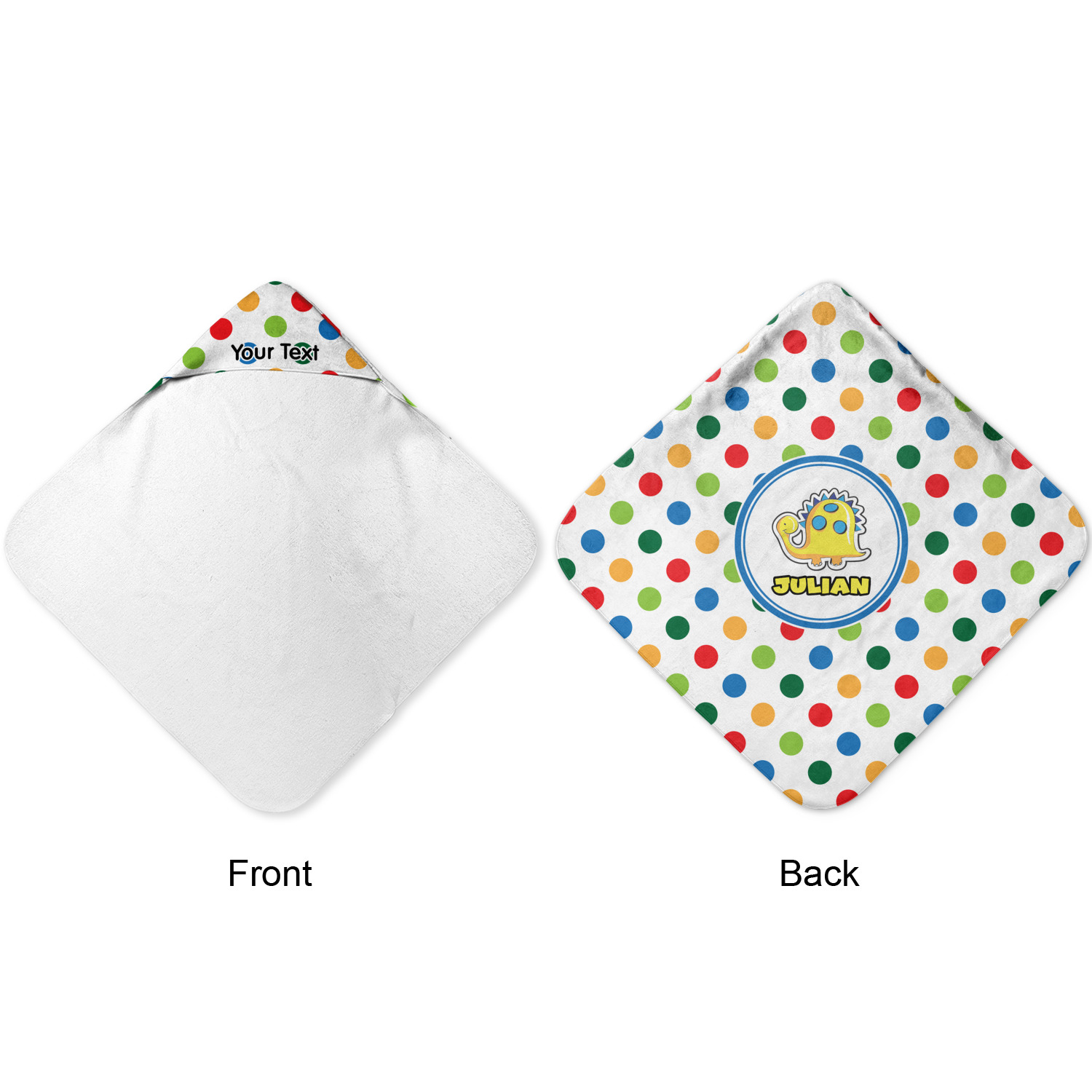 This baby towel is made with a plush microfiber velour and cotton terry. and thus will be soft and gentle against your newborn's skin, but also, very absorbent. Your customization is printed across the front & the hood, while the inside is a classy white.
