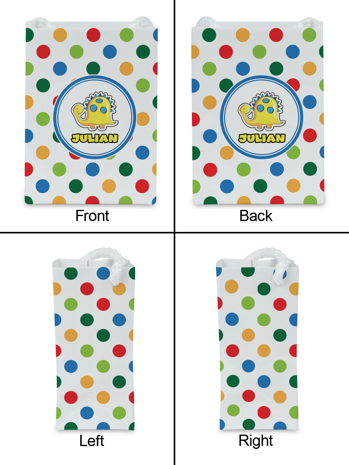 These jewelry gift bags are available in two finishes - matte or gloss. The are digitally printed in full color, then cut down to size, scored & folded. A single handle is attached.