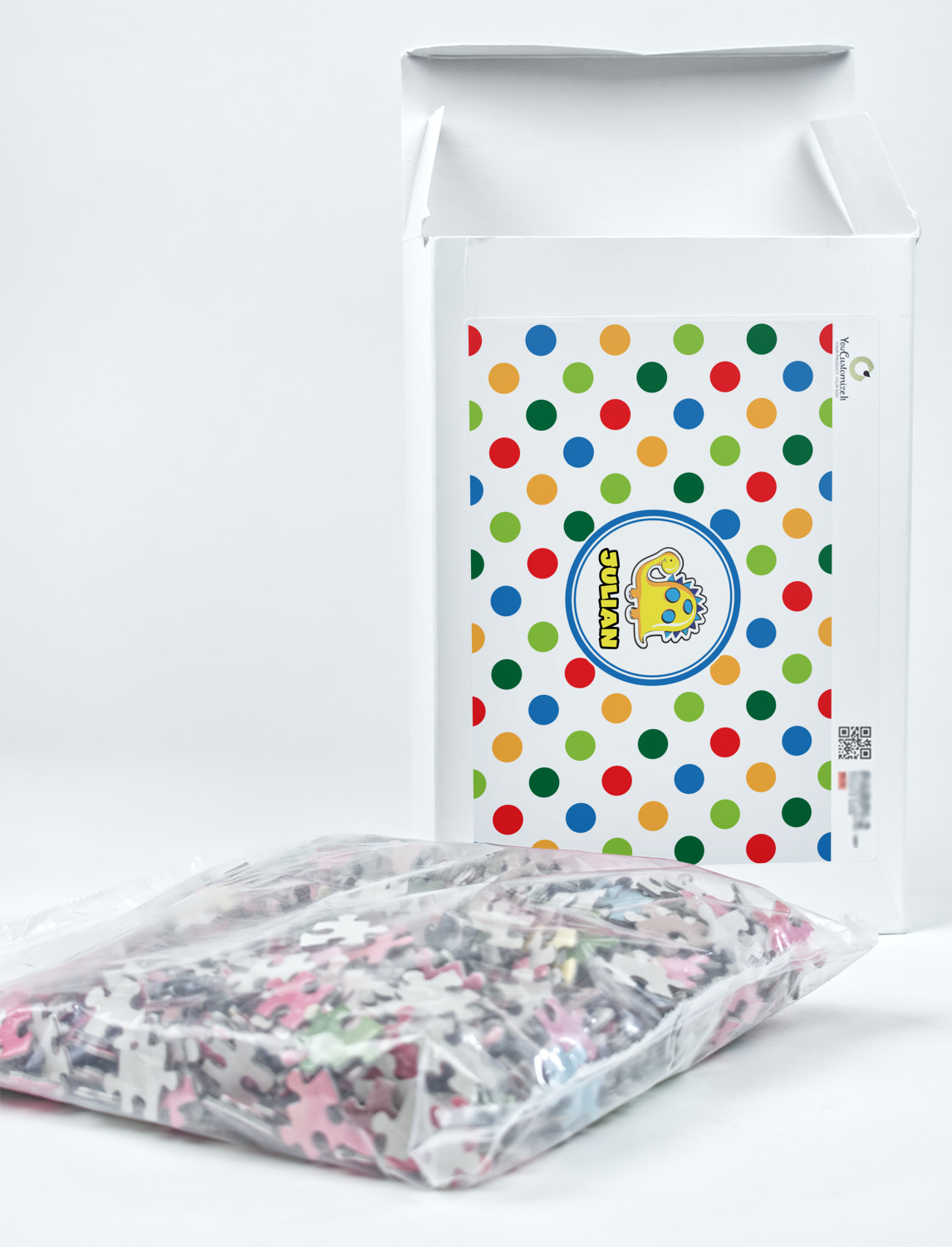 You can also upload your logo or art that you or your kids drew. To create more challenging jigsaw puzzles, you can create a pattern from with your logo or artwork. You can also add other elements such as text or personalization.