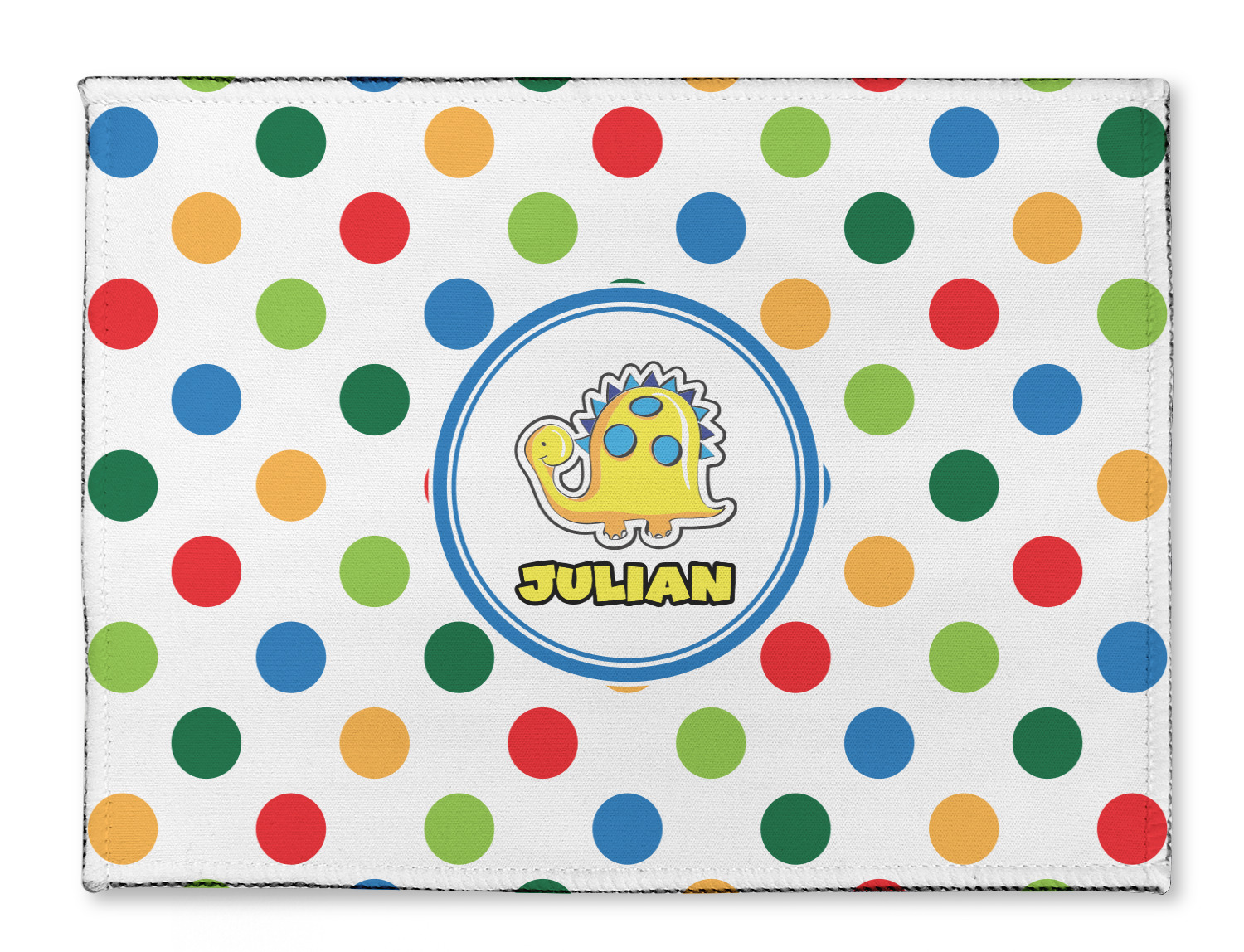 A white label trimmed in coordinating blue showcases a cute yellow dinosaur. Add personalization of your choice for this special pattern.