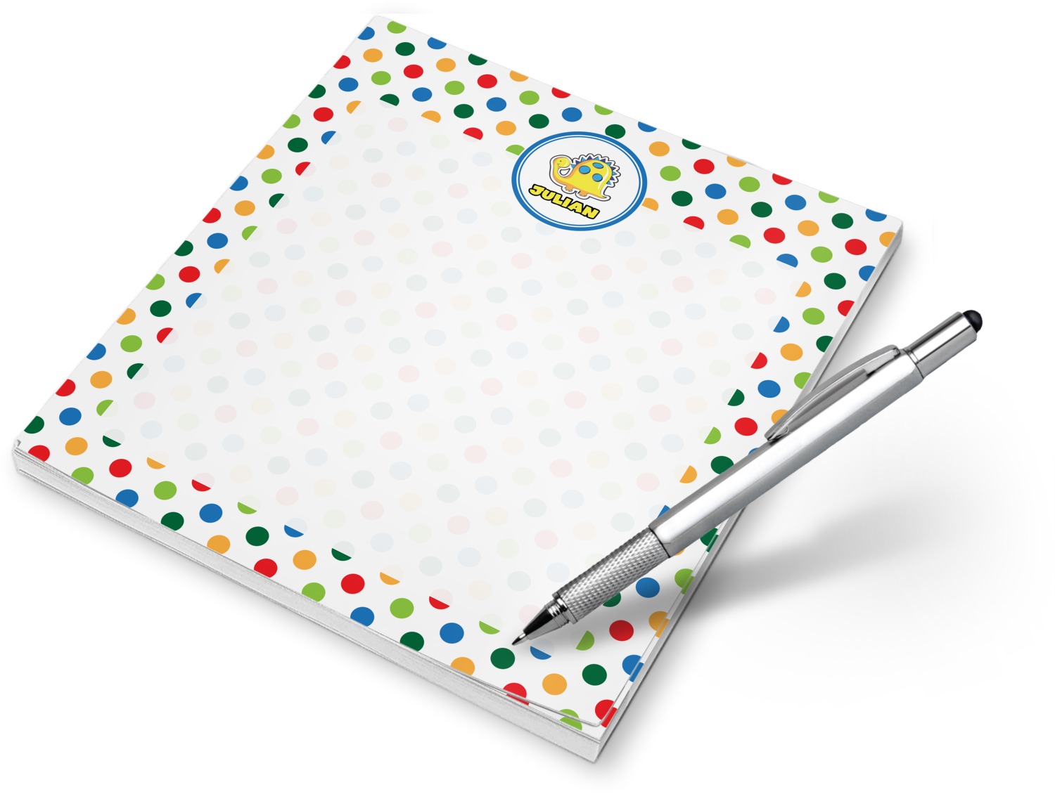 Your custom notepad features 50 sheets of thick, white paper, with your customization in the background and the edges. At approximately 6" x 5.5", these personalized memo pads are slightly larger than your average notepad. The individual notes tear easily from binding, which allows for quick, convenient, note-taking.