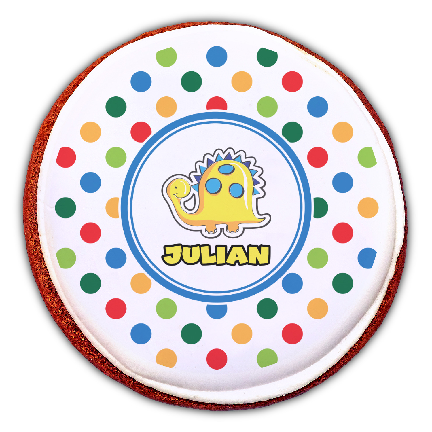 Your customized cookie toppers can be placed on top of any dessert with an icing top.The icing helps adhere the cookie topper to the dessert.