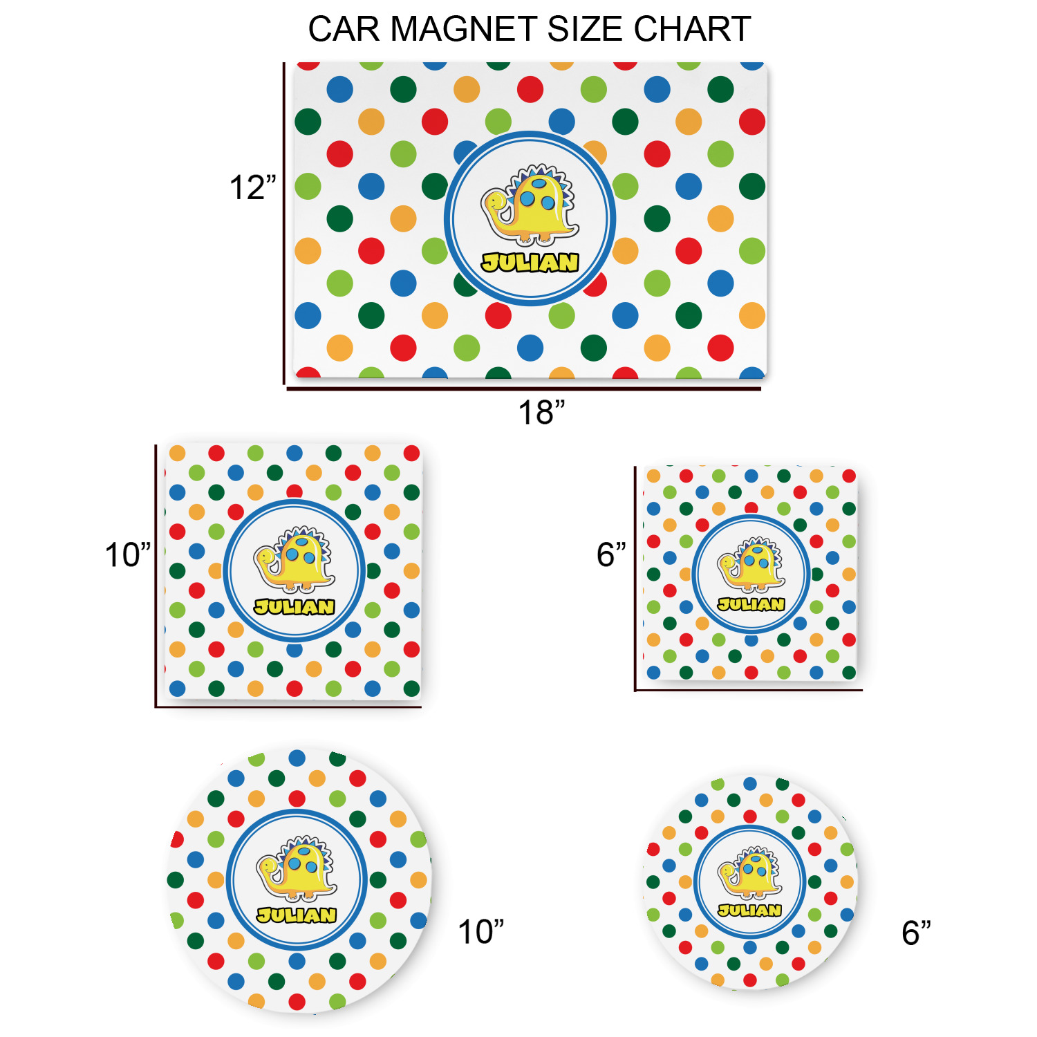 Your personalized car magnets are available for purchase in two shapes and two sizes. We carry round and square editions; each shape can either be 6 by 6 inches, or 10 by 10 inches, depending on your needs. Both versions are 1 millimeter thick, which is considered, within the industry, as the ideal thickness for automobile magnets. The magnetic car decals will adhere to any smooth, metal surface of your cars body, such as the trunk door or a side panel. However, please note that some vehicles are constructed from fiberglass bodies, which prevents the adhesion of anything magnetic. We advise that you test your vehicle before purchasing these magnets.