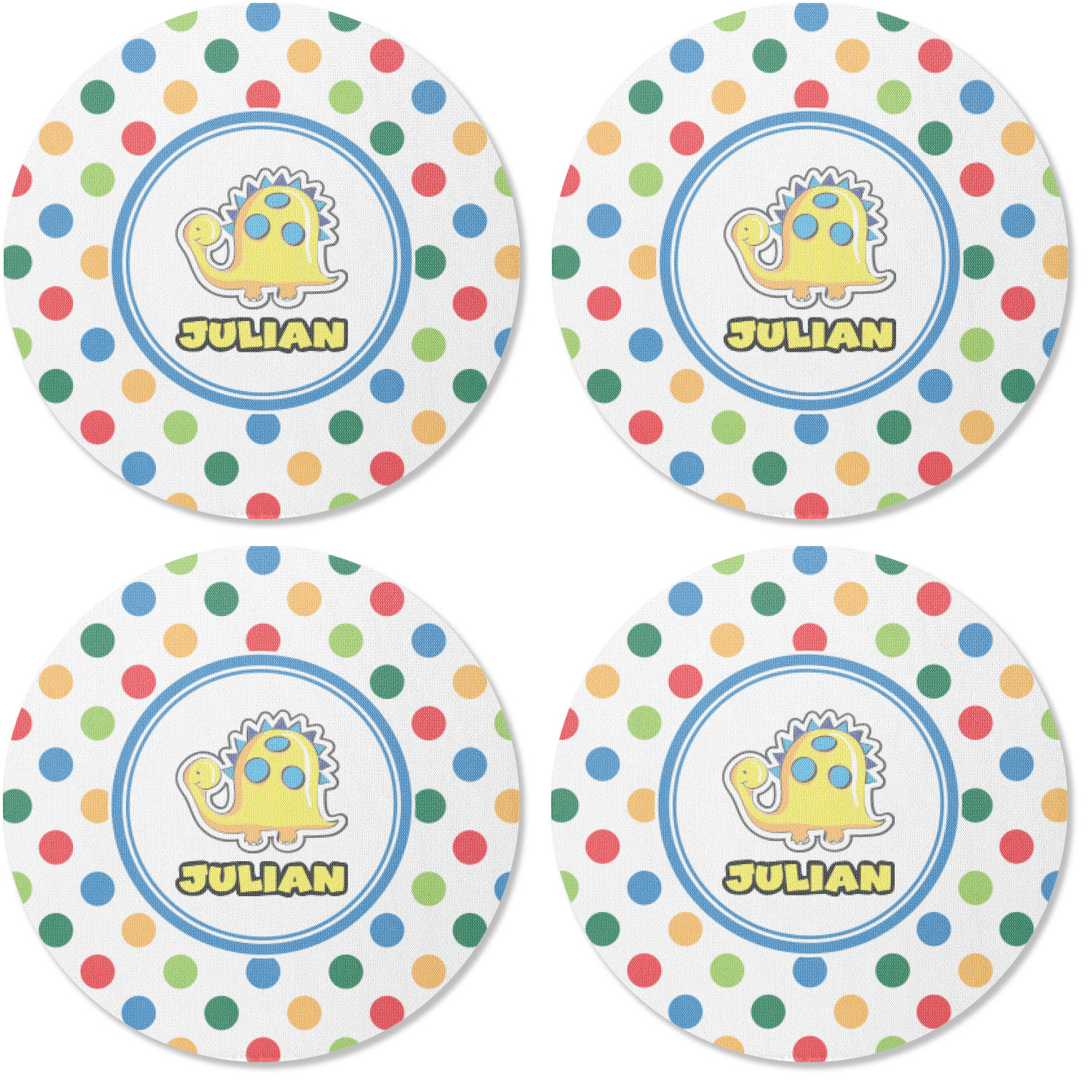 These drink coasters have a smooth, polyester top and a textured, rubber backing on its bottom. The non-slip rubber backing underneath works to keep any spills at bay. At 4 by 4 by 0.25 inches thick, these custom coasters are a suitable size for most drinkware. Your personalization is displayed atop the face of the cup coaster. We sell these rubber coasters in two different shapes: square and round. You can buy each shape as singulars or as a set of 4.