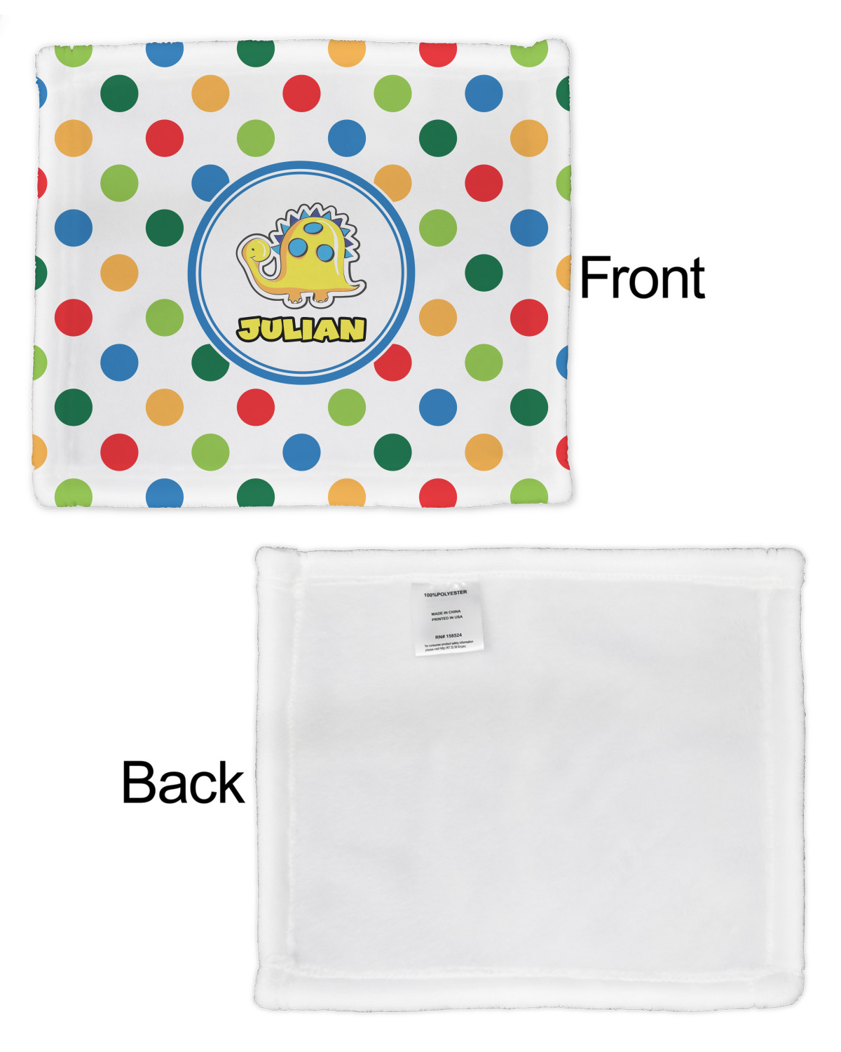 Crafted from an ultra soft fleece, these lovey blankets are the perfect, portable size to follow your child on any of his or her adventures. The plush texture also makes them ideal for naptime. Each personalized baby blanket measures at approximately 12 by 11 inches.