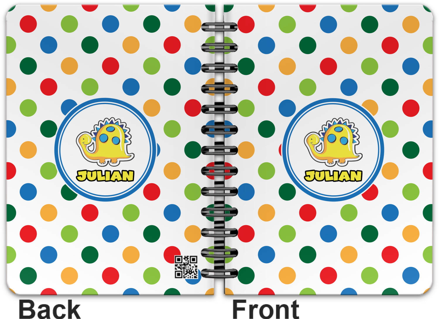 This spiral notebook includes 75 sheets of thick, ruled paper. The front and back of this custom notebook is made of a robust, laminate, plastic covering. We print your personalization on these two panels, underneath a glossy finish, which emphasizes the colors of your design. The two panels and the sheets of paper are held together by a sturdy, black coil. The paper within your bound notebook is perforated for easy, clean tearing.