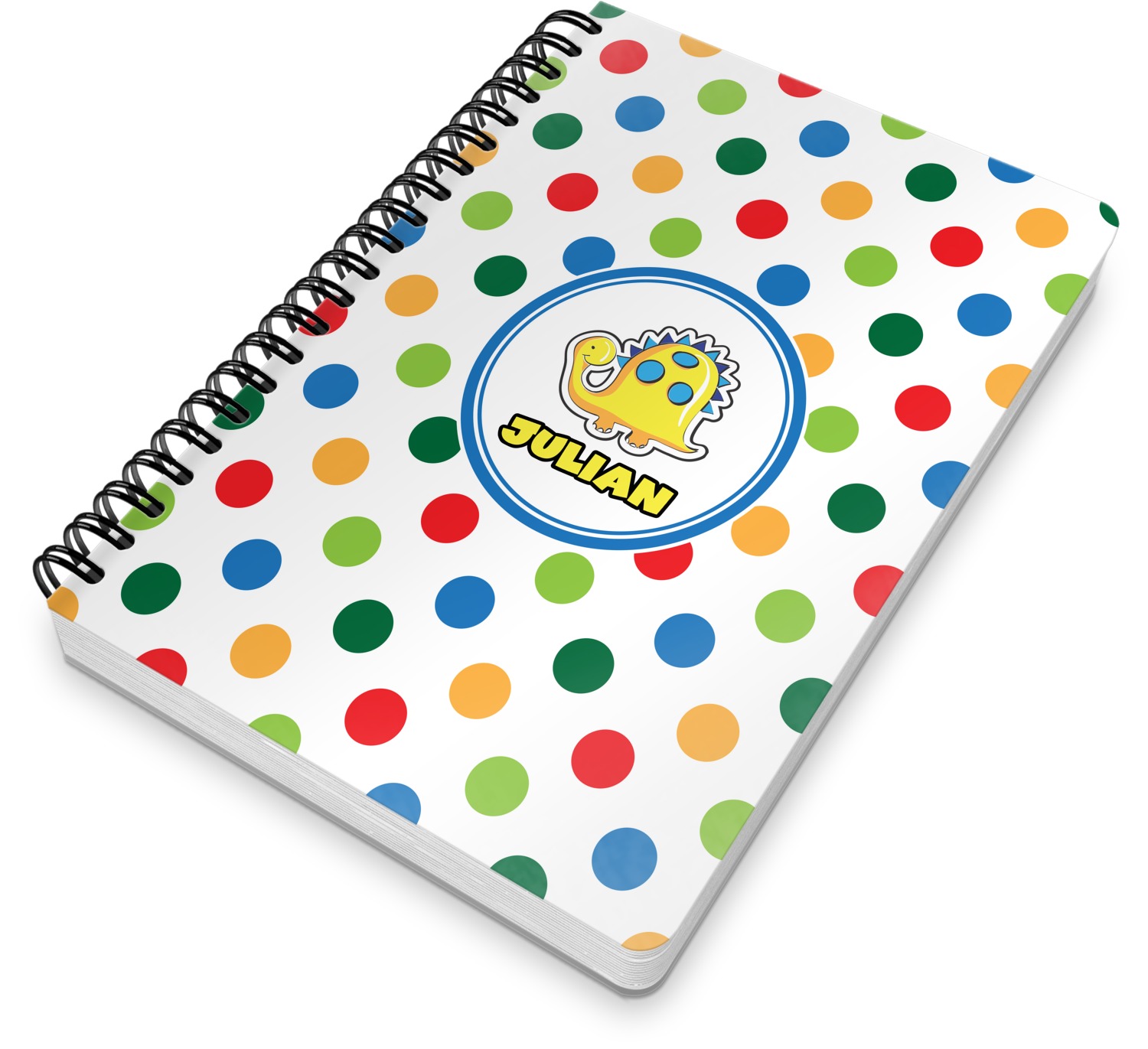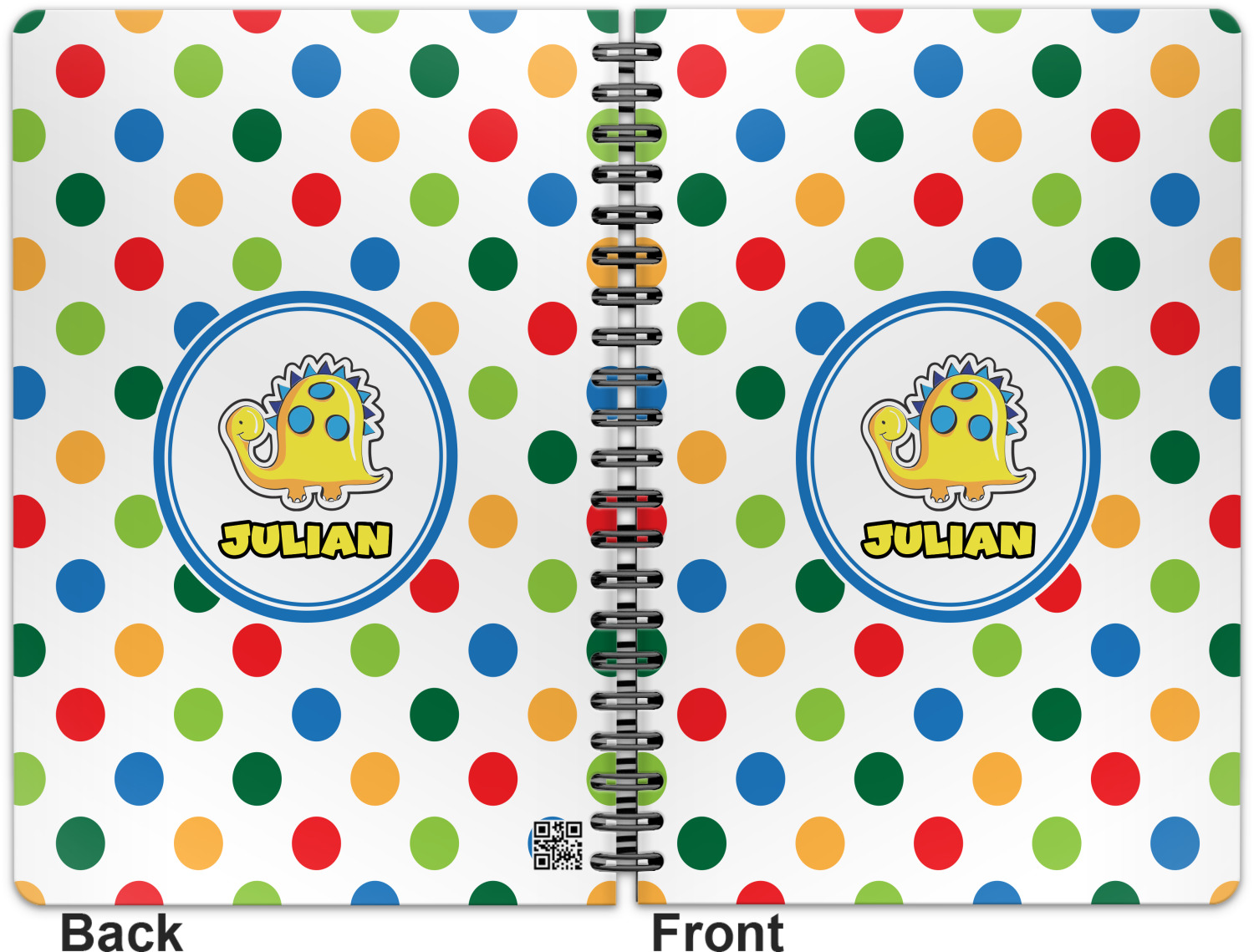 This spiral notebook includes 75 sheets of thick, ruled paper. The front and back of this custom notebook is made of a robust, laminate, plastic covering. We print your personalization on these two panels, underneath a glossy finish, which emphasizes the colors of your design. The two panels and the sheets of paper are held together by a sturdy, black coil. The paper within your bound notebook is perforated for easy, clean tearing.