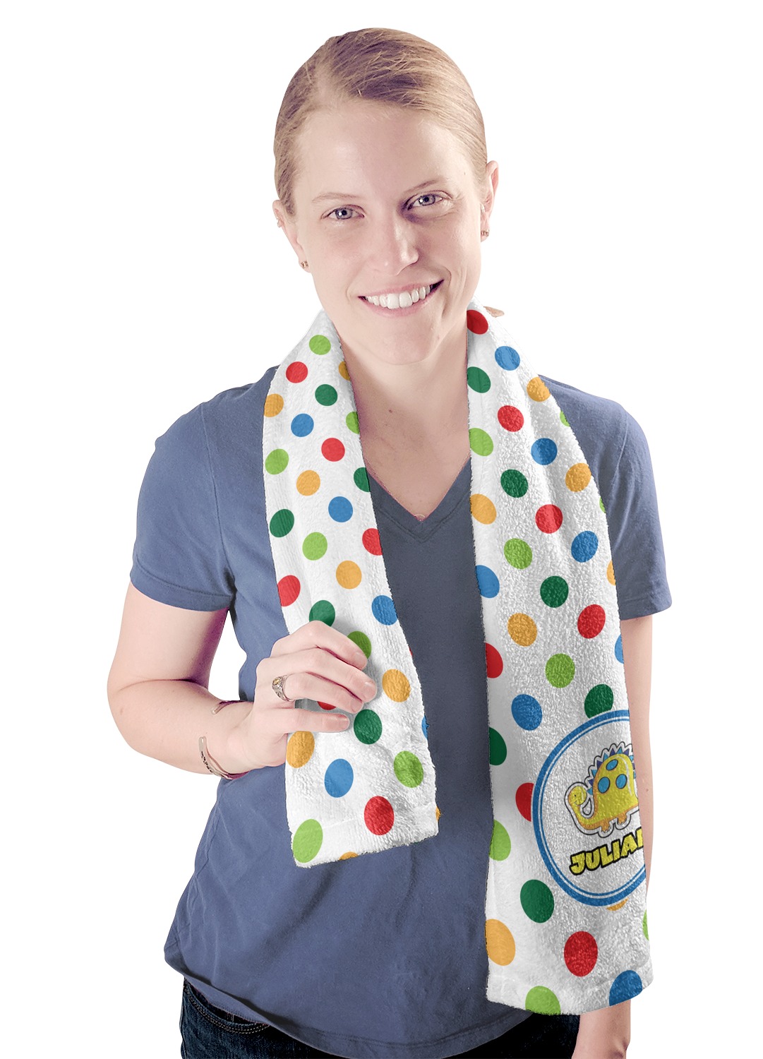 These towels are 44" x 12", which are the perfect size for hanging around your neck on the treadmill or wiping your brow after a hard workout. They are full-print towels with your very own design printed right on the front! They are perfect for soaking up moisture and are quite soft against your skin.