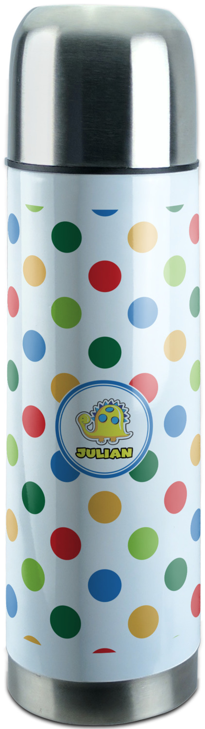 Manufactured from stainless steel, this thermos is built durably and double-walled insulated to preserve the temperature of your drink for hours. It also features a screw off lid that is made to also function as a small cup. Upon unscrewing this part of the thermos bottle, a pop-open, pour feature emerges. This feature allows you to slowly pour your beverage into your lid, ensuring a steady, controlled pour into your lid or other cup. With a capacity of 25 ounces, these large thermoses can hold several servings of your favorite beverage. Your customization is displayed all around the bottle with bright, vibrant color.