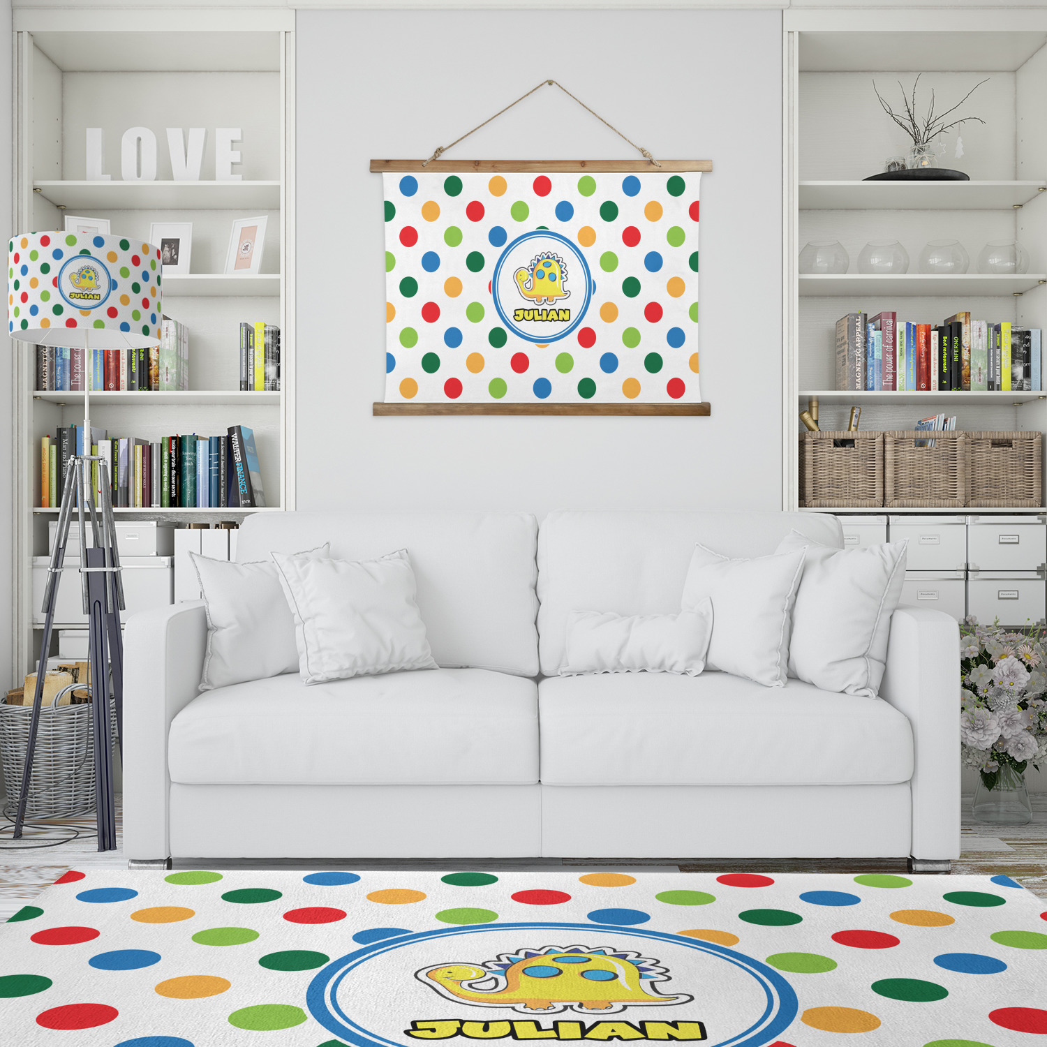Colorful and popular bright colored polka dots scream fun and whimsical and will be a hit with your little one. Using colors of Blue, red, greens, and orange decorating will be a snap.
