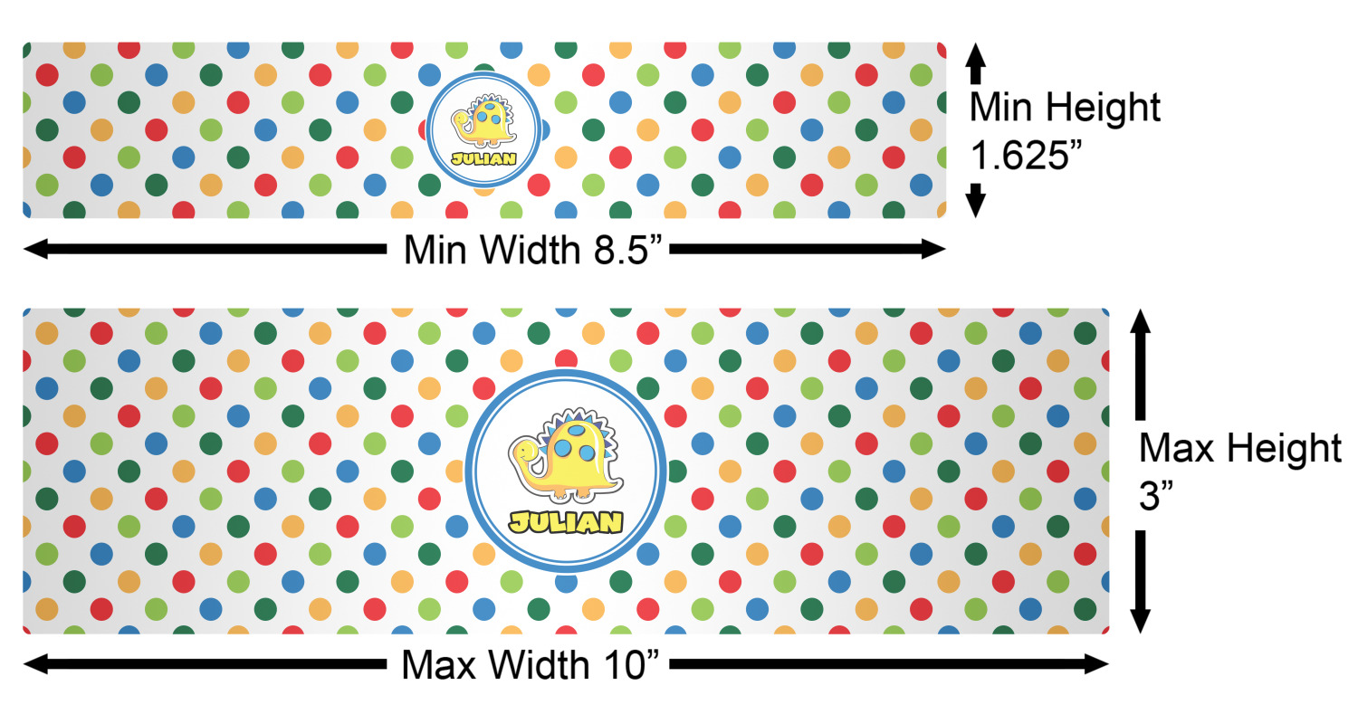A white label trimmed in coordinating blue showcases a cute yellow dinosaur. Add personalization of your choice for this special pattern.