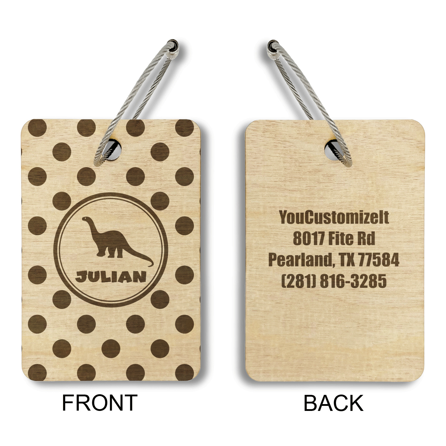 Made from a premium hardwood, these luggage tags are laser engraved and cut just for you. The front contains your design of choice and the back has your contact information to ensure your luggage gets back to you if ever lost.