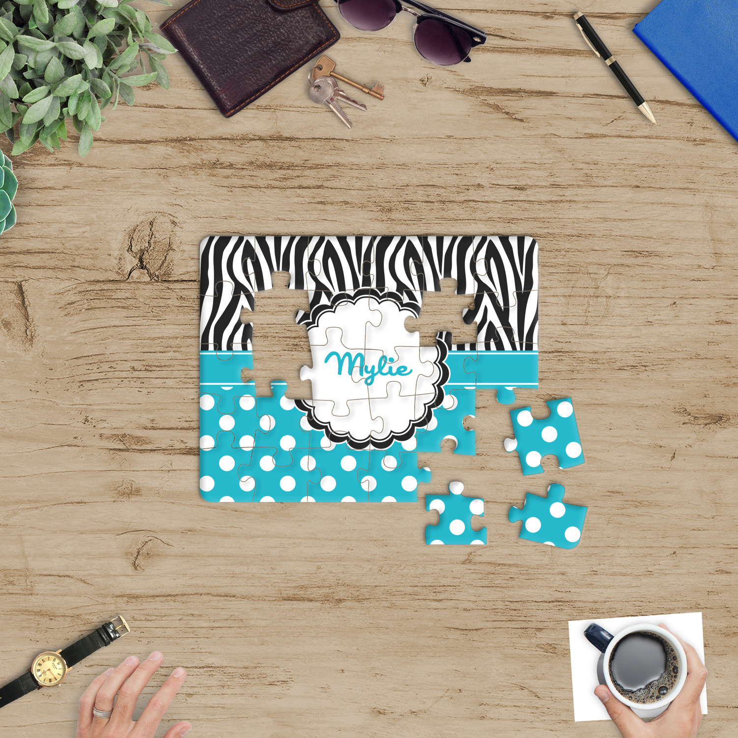 You can also upload your logo or art that you or your kids drew. To create more challenging jigsaw puzzles, you can create a pattern from with your logo or artwork. You can also add other elements such as text or personalization.