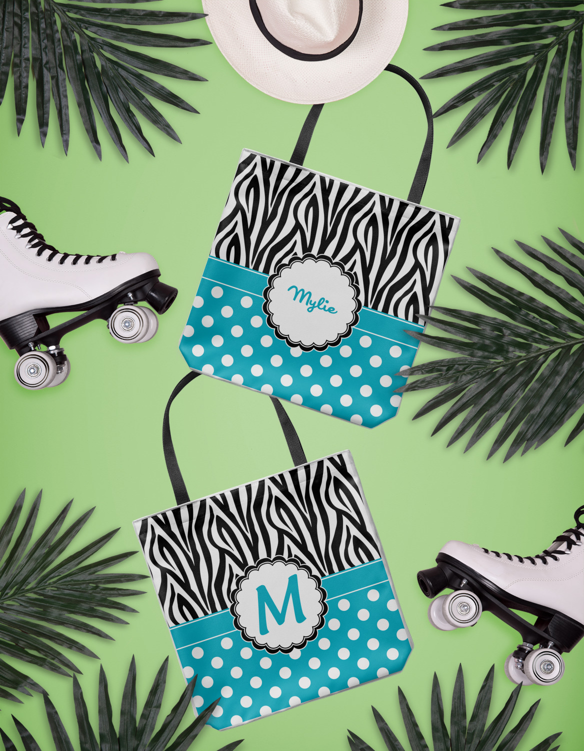 Here is a wonderful zebra print with a fun, modern twist. The top of this design features a black and white traditional zebra print. To add color and flair you can pair the zebra pattern with your choice of color and white polka dot pattern on the bottom.