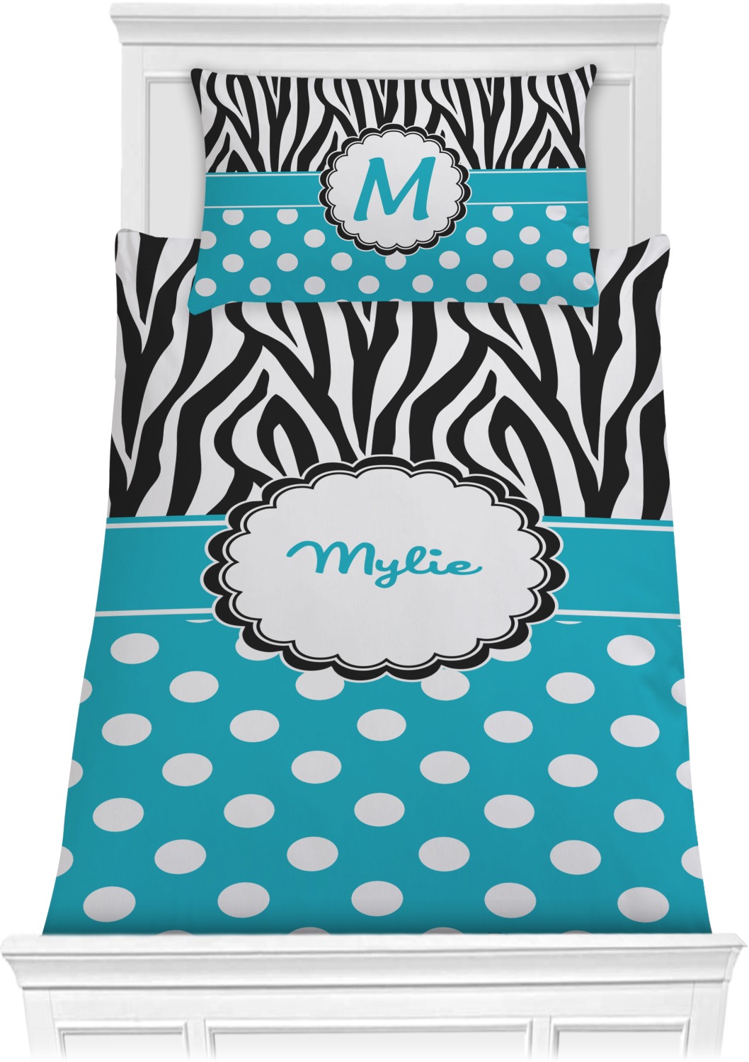 Here is a wonderful zebra print with a fun, modern twist. The top of this design features a black and white traditional zebra print. To add color and flair you can pair the zebra pattern with your choice of color and white polka dot pattern on the bottom.
